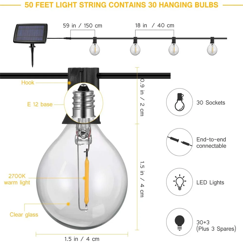 Садовый Солнечный светильник s электрическая лампочка эдисона G40 светодиодный лампы декоративные открытый гирлянды Свадебная E12 светильник Водонепроницаемый декор для вечерние двор