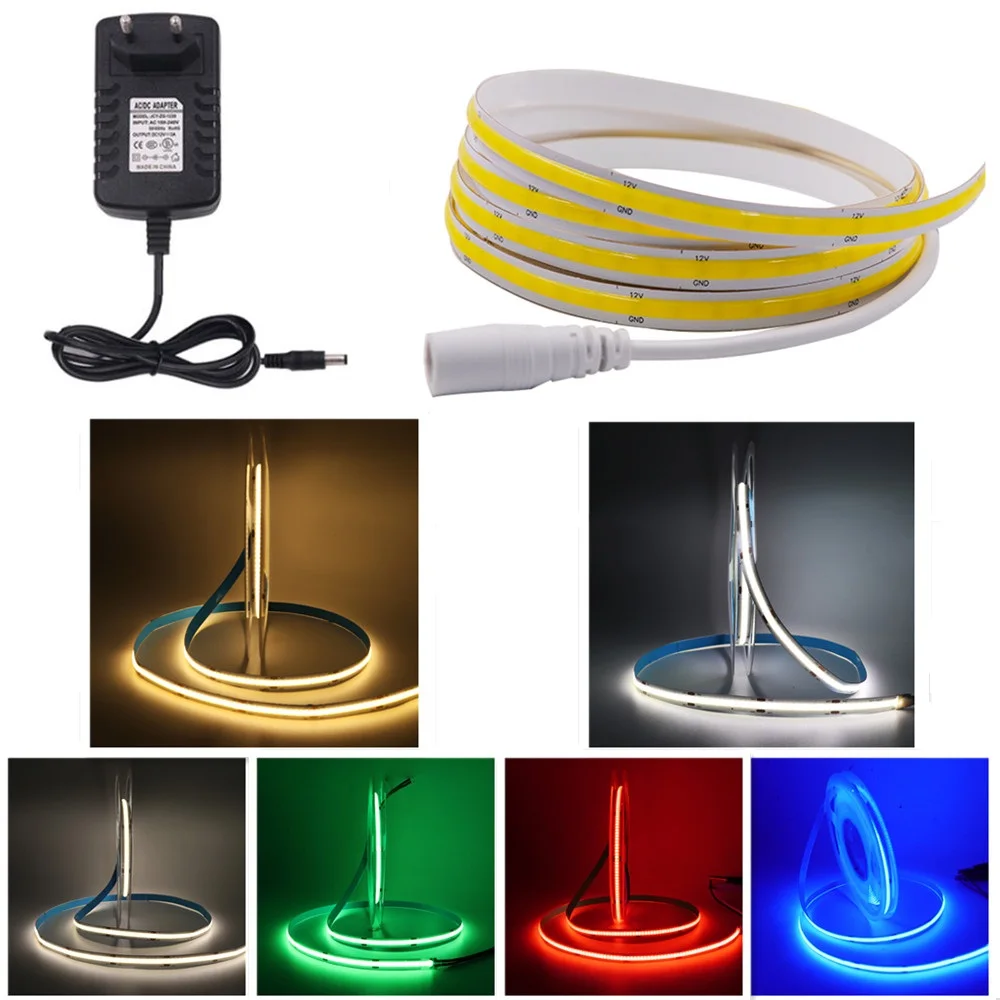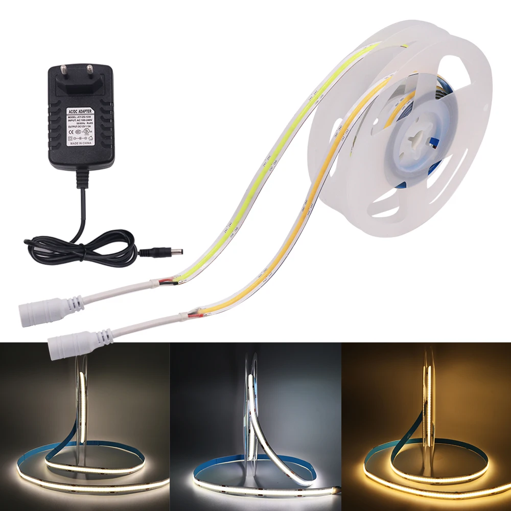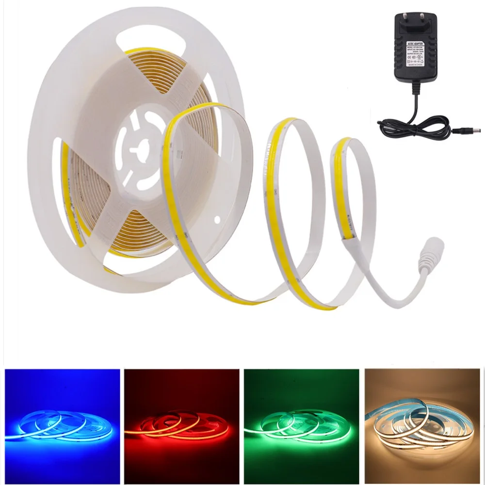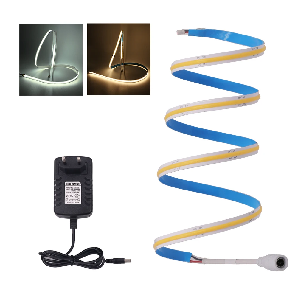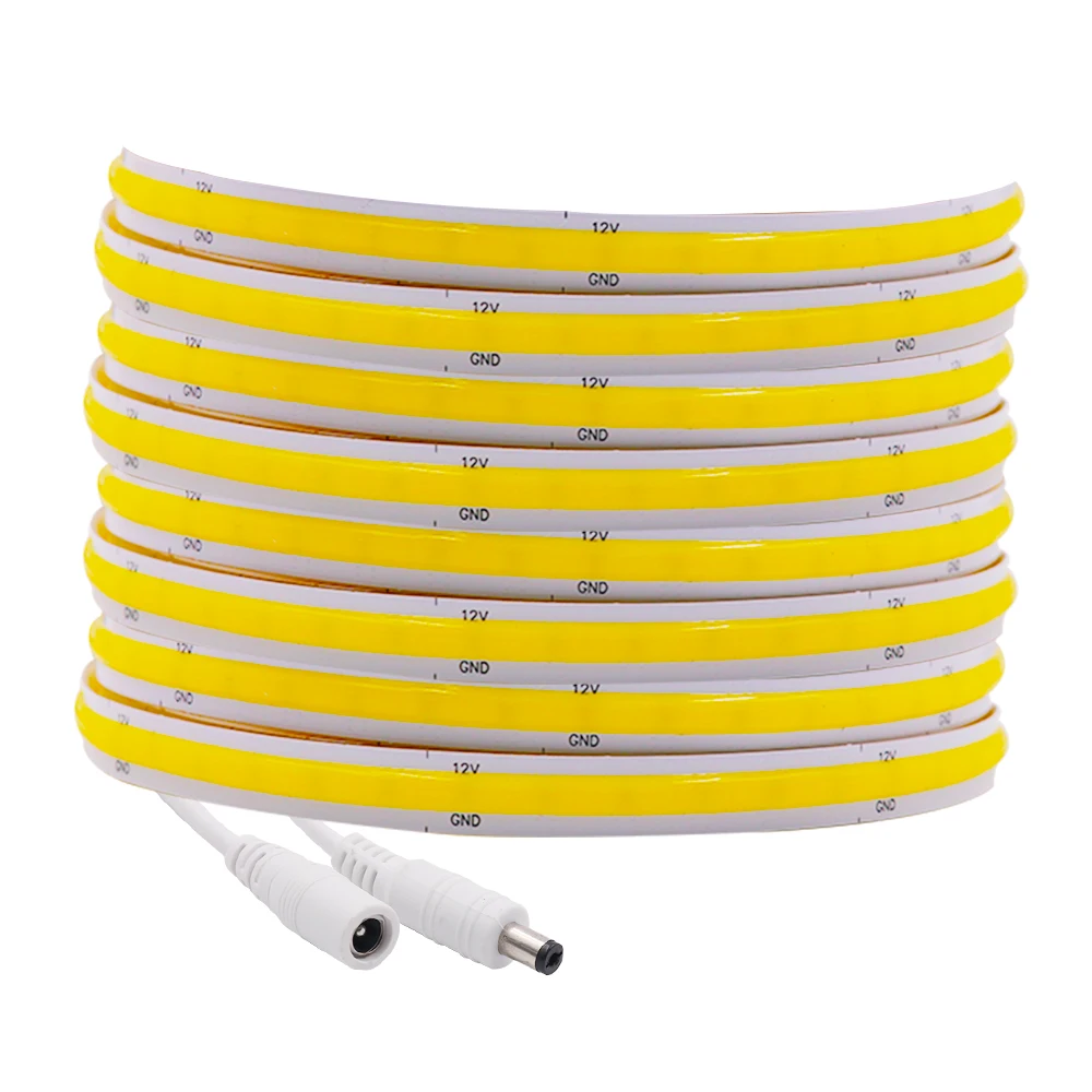 DC12V 24V COB Светодиодная лента с питанием от ЕС, мягкие гибкие лампы FCOB без пятен, 320 светодиодов 384 светодиодов 528 светодиодов, светильник в полоску высокой плотности