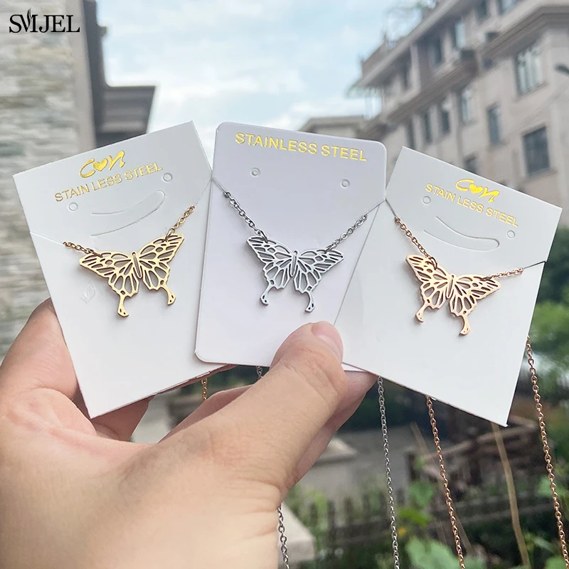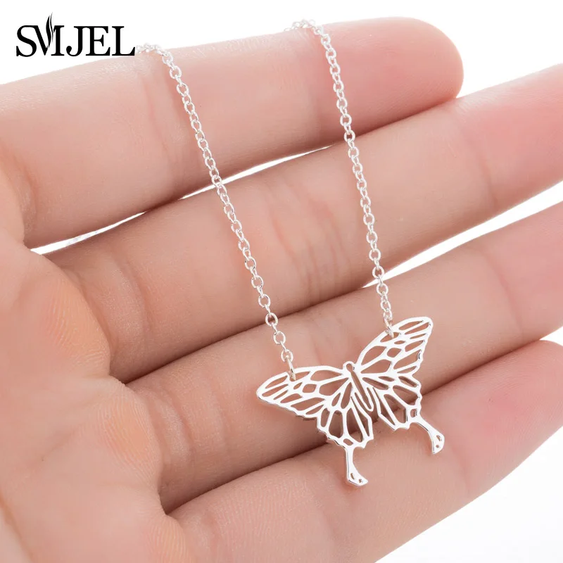 Модное ожерелье-чокер с бабочкой из нержавеющей стали, оригами, животное, ключицы ожерелья цепи, подвески для женщин, подарки на день рождения