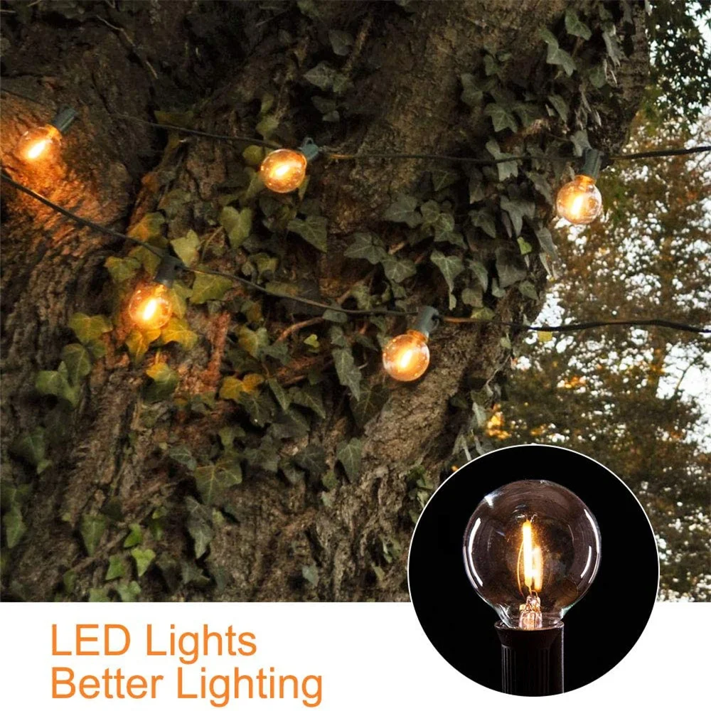 Светодиодный солнечный светильникGlobe String Lights G40 наружные гирлянды 25 футов 25 лампочек/18 футов 10 лампочек с Эдисоном стеклянные лампочки теплые белые соединительные подвесные светильники для патио водонепроницаемые задние дворы для балкона вечерние светильники для декора с гнездом E12