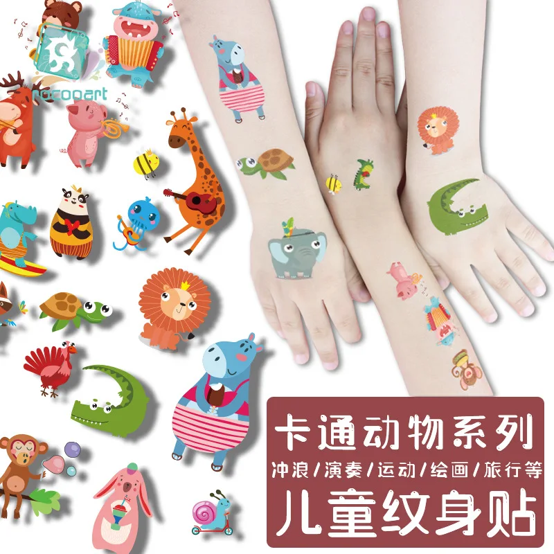 1 предмет, детская одежда с изображением животных стикер татуировки рука милые временная татуировка наклейки для мальчиков и девочек, Водонепроницаемый стикер татуировки Поддельные Татуировки