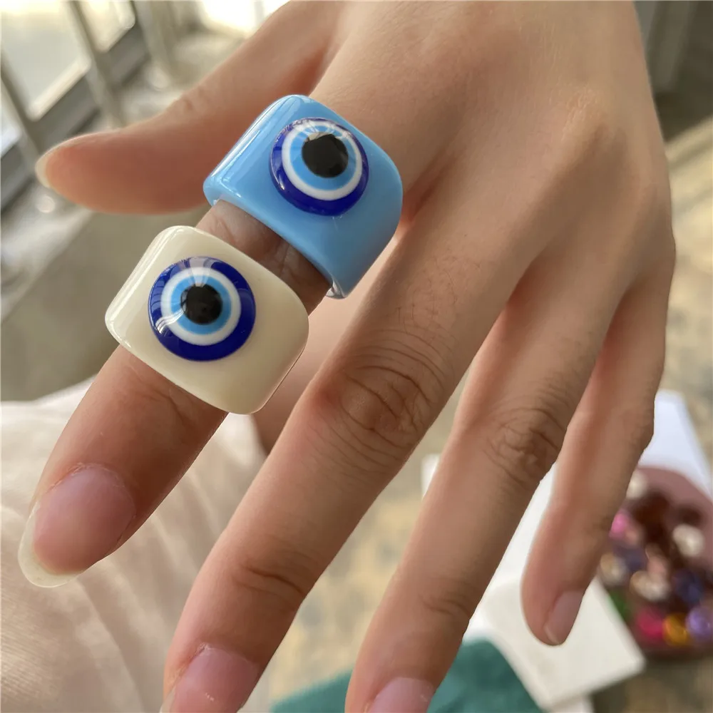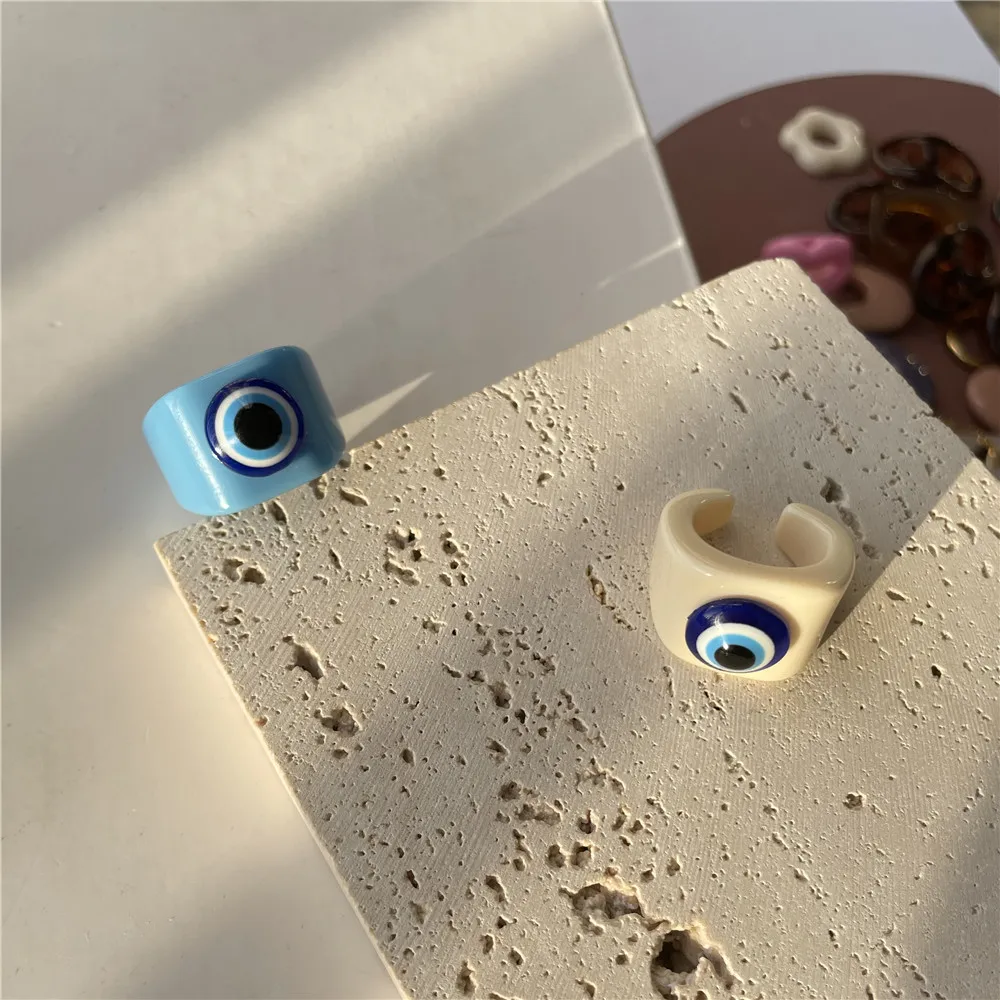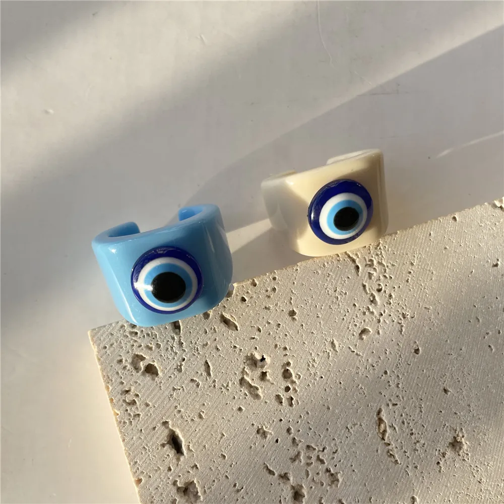Женское кольцо с геометрическим узором HUANZHI, летнее Открытое кольцо с белым и голубым дьявольским глазом, в Корейском стиле, 2021