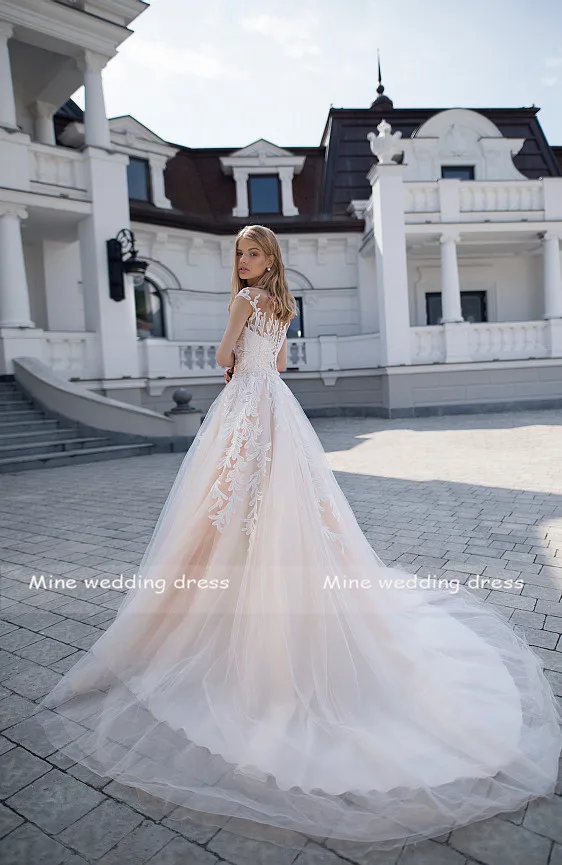 Кружевное платье-трапеция из тюля, с круглым вырезом и рукавами-крылышками
