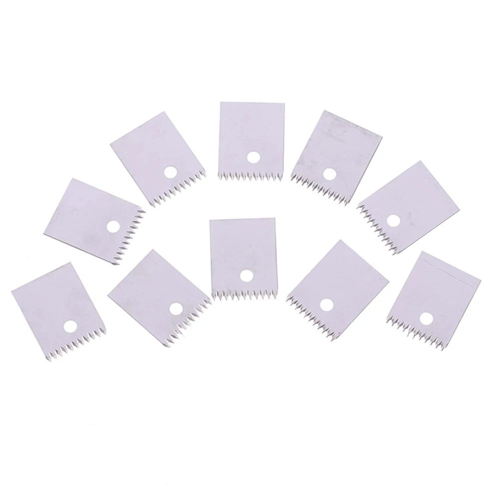 100% новый и высококачественныйСменные лезвия связующего станка для штока.Зубчатое лезвие для быстрой резки ленты.Изготовлен из высококачественной нержавеющей стали, прочный в использовании.Легко работать.Спецификация:Материал: нержавеющая стальРазмеры: 15x20 мм (0,59x0,78 дюйма) (прибл.)Цвет: серебристыйКоличество: 5/10 шт.