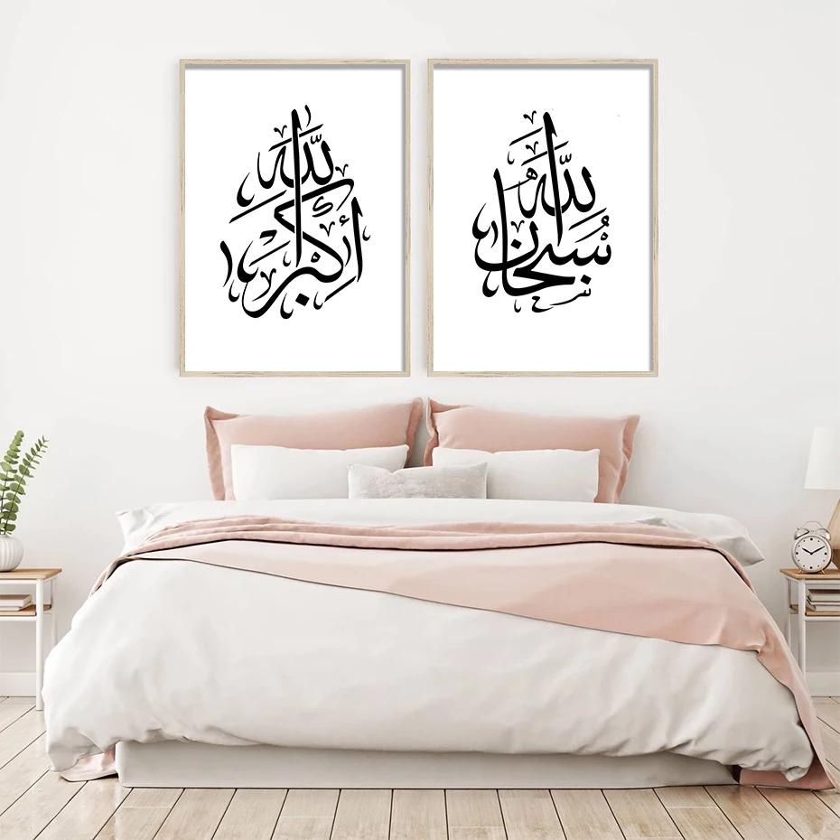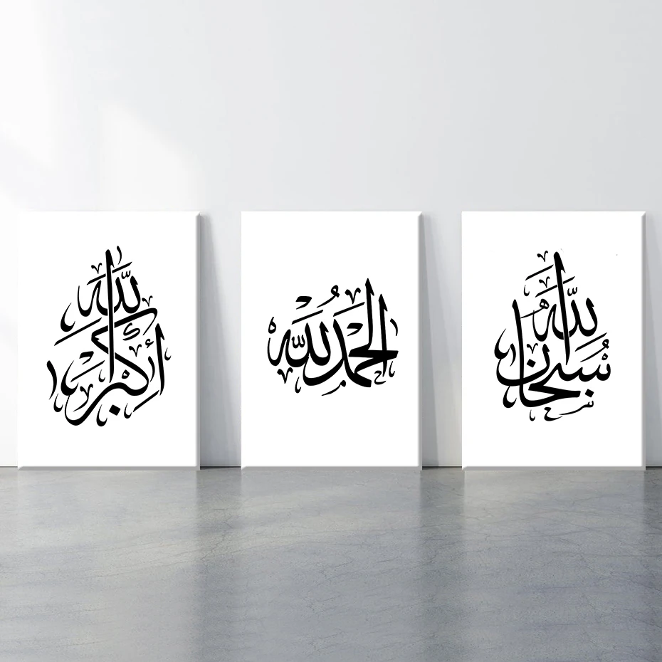 Плакаты для спальни, черно-белые, субханаллах, мусульманская каллиграфия, настенное искусство, картины, украшение для дома, Аллаху, акбара