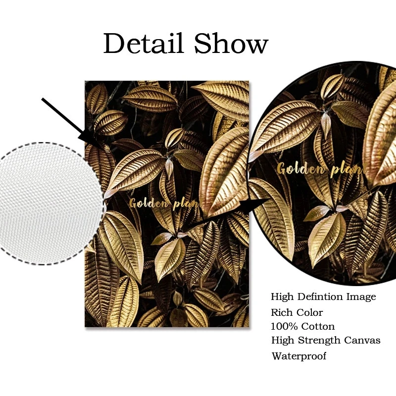 Современная Абстрактная Настенная картина с изображением золотых листьев и цветов в скандинавском стиле, черные и белые перья, постер с рисунком, декор для гостиной