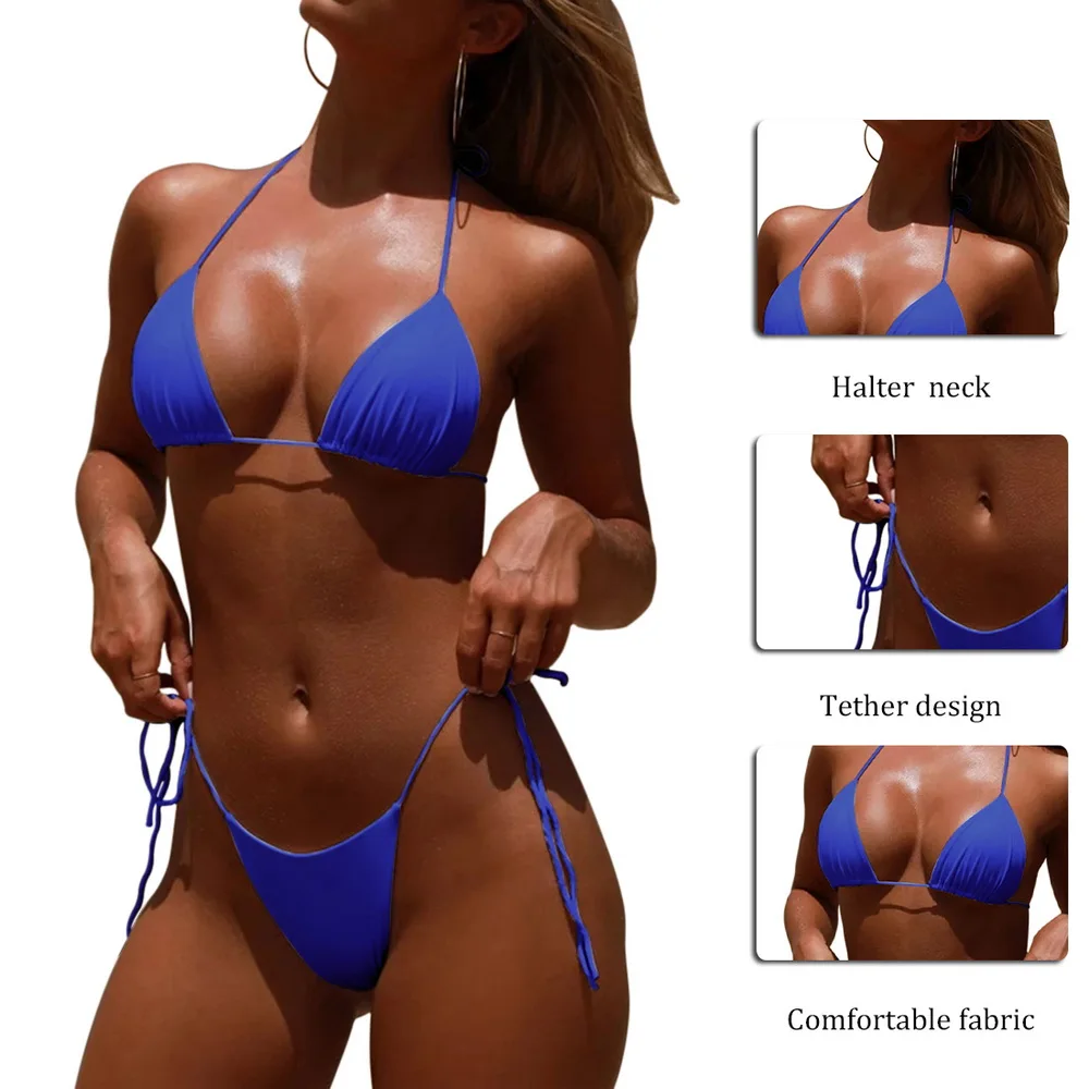 Сексуальный женский купальный костюм, бикини, бразильский купальник с бюстгальтером пуш-ап, комплект бикини, купальник из двух предметов, однотонная пляжная одежда, купальный костюм