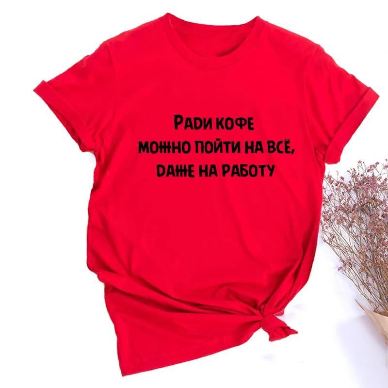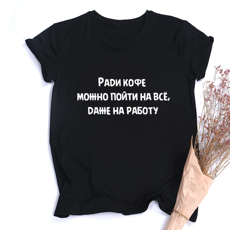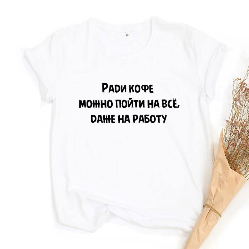 Ради кофе вы можете перейти к что-нибудь еще работать на русском надписью Harajuku модные милые лозунг футболка