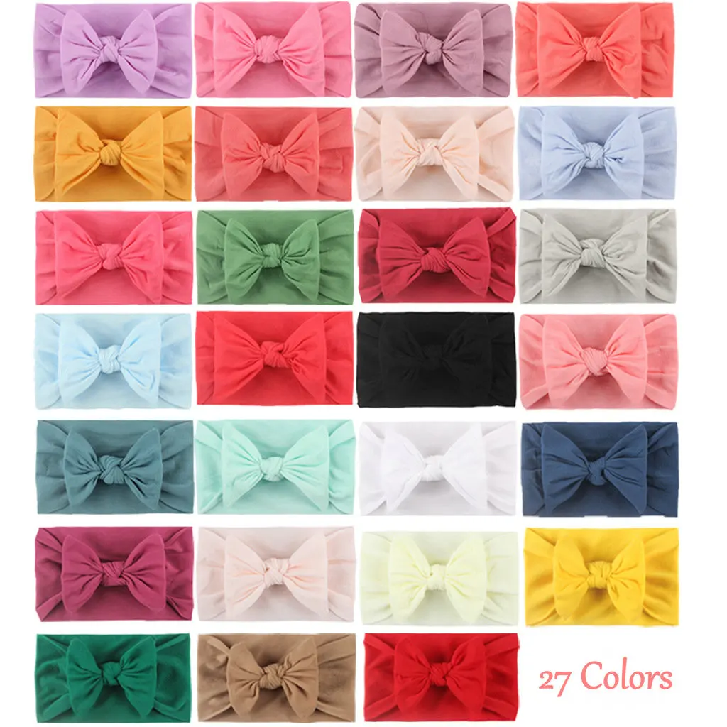 2 шт., Детская повязка на голову, аксессуары для волос для маленьких девочек, банты, головной убор из мягкого нейлона, повязка на голову, подарок для новорожденных, повязка на голову