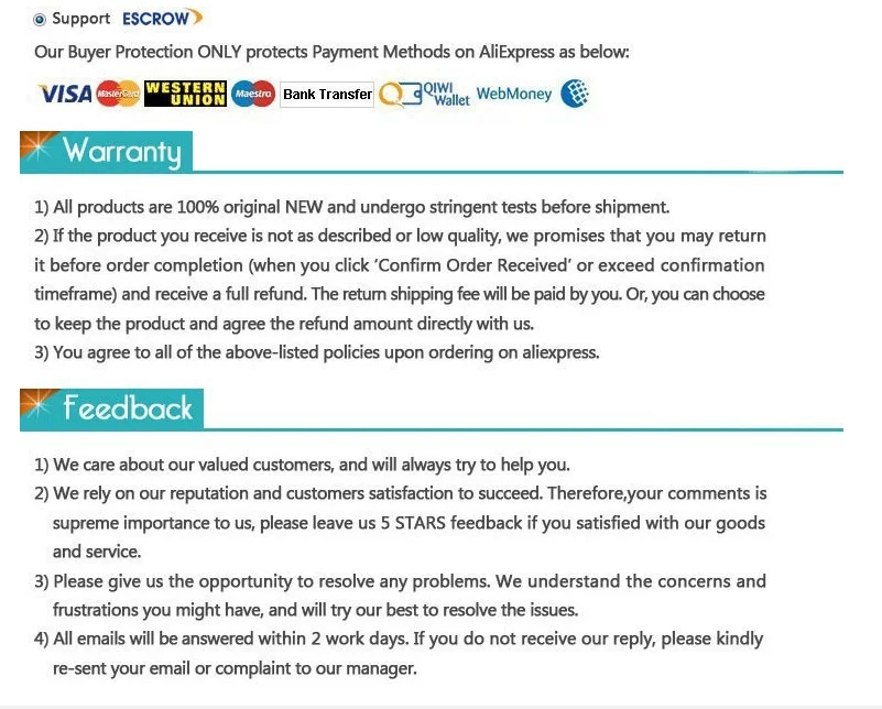 Entraremos em contato dentro de 24 horas, iremos cooperar com você até que esteja satisfeito, nos esforçamos para 100% de satisfaçao do cliente.