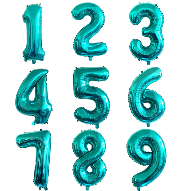 CYUAN 32 дюймов бирюзовый воздушные шары из фольги в виде цифр 0-9 ...