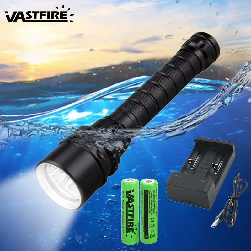 Профессиональный 10 Вт УФ-свет для подводного плавания 100 м перезаряжаемый светодиодный XPE XM-L 5xT6 фонарик для подводного плавания 365-395 нм фонарик