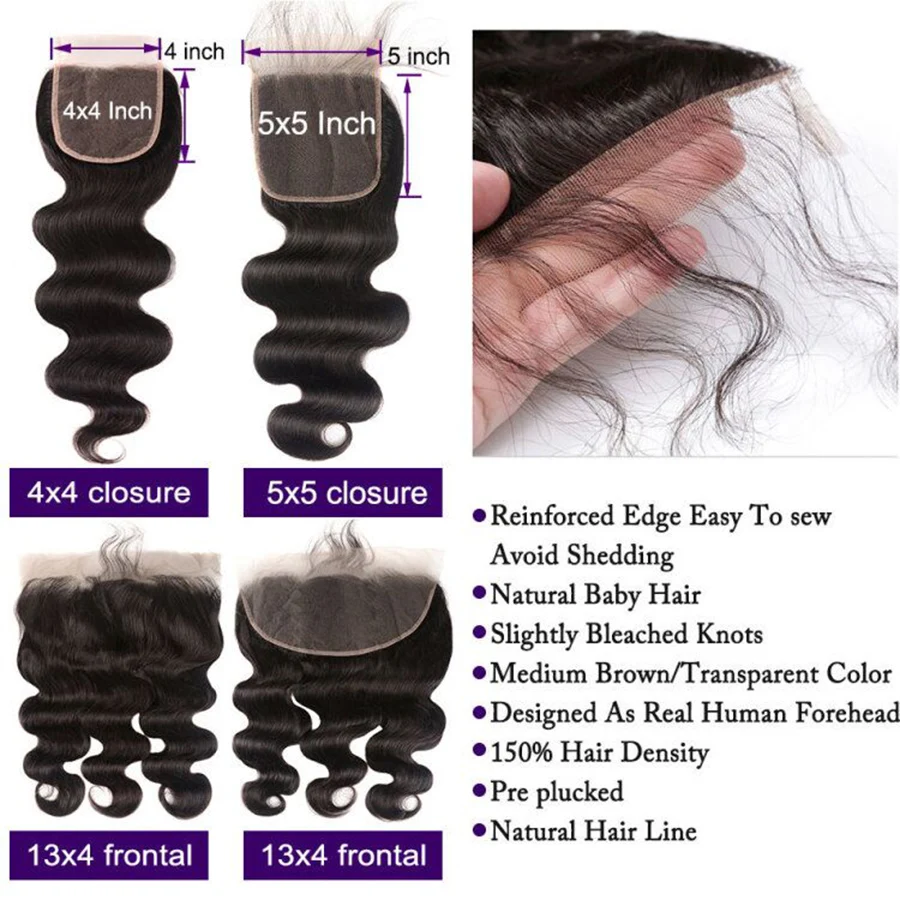 HD 5x5 волнистые пряди с закрытием Малазийские Волосы Remy человеческие волосы пряди с фронтальной прозрачный 13x4 кружева фронтальные с пряди