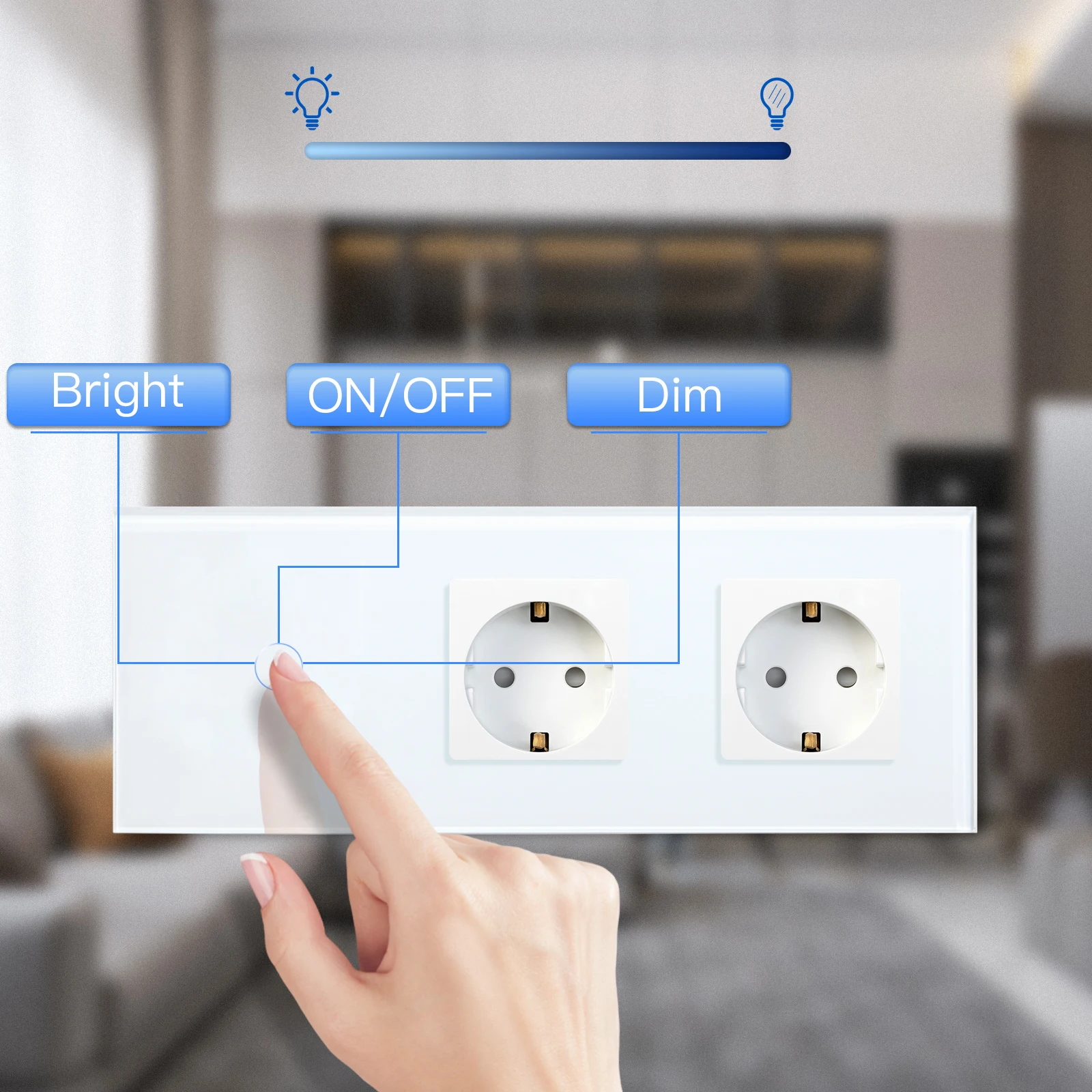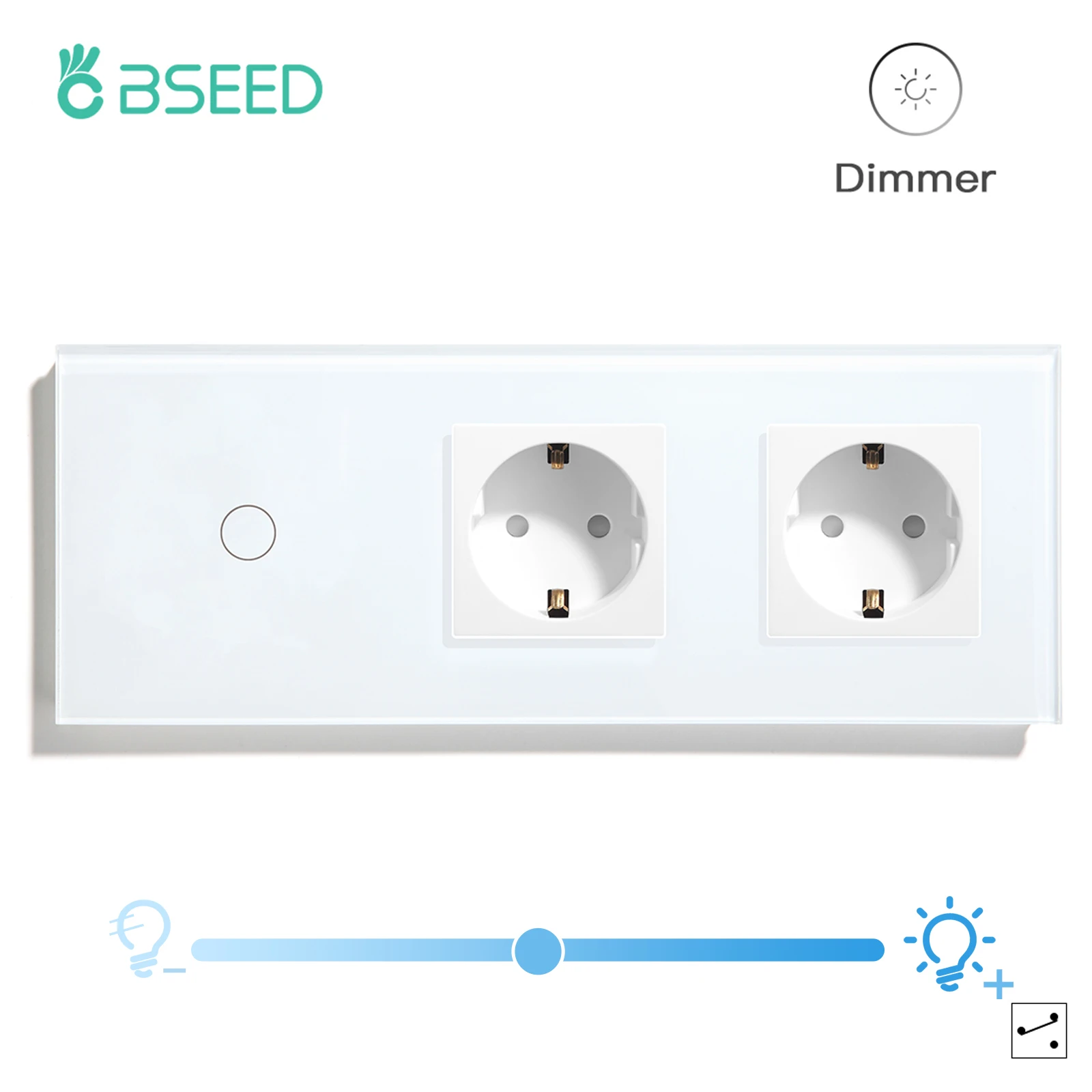 BSEED 1Gang2Way сенсорный диммер светодиодный сенсорный диммер с двойной ЕС Мощность Вилки 16A настенные сенсорные выключатели Carystal Стекло
