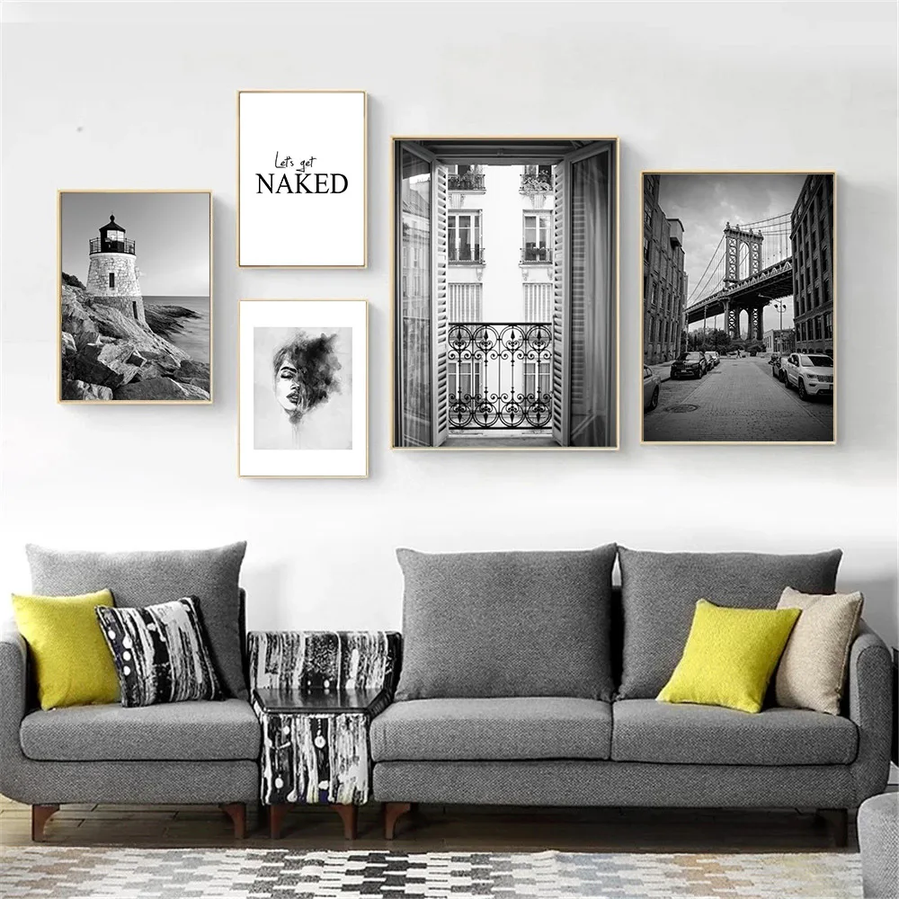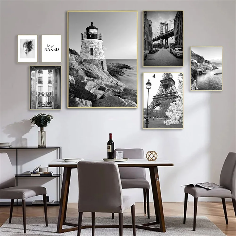 Черно-Белая Башня плакаты городской пейзаж настенная Художественная печать океан Маяк холст живопись скандинавские настенные картины для домашнего декора