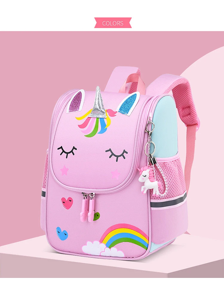 Рюкзак для девочек, нейлоновый, с принтом розового единорога, водонепроницаемый
