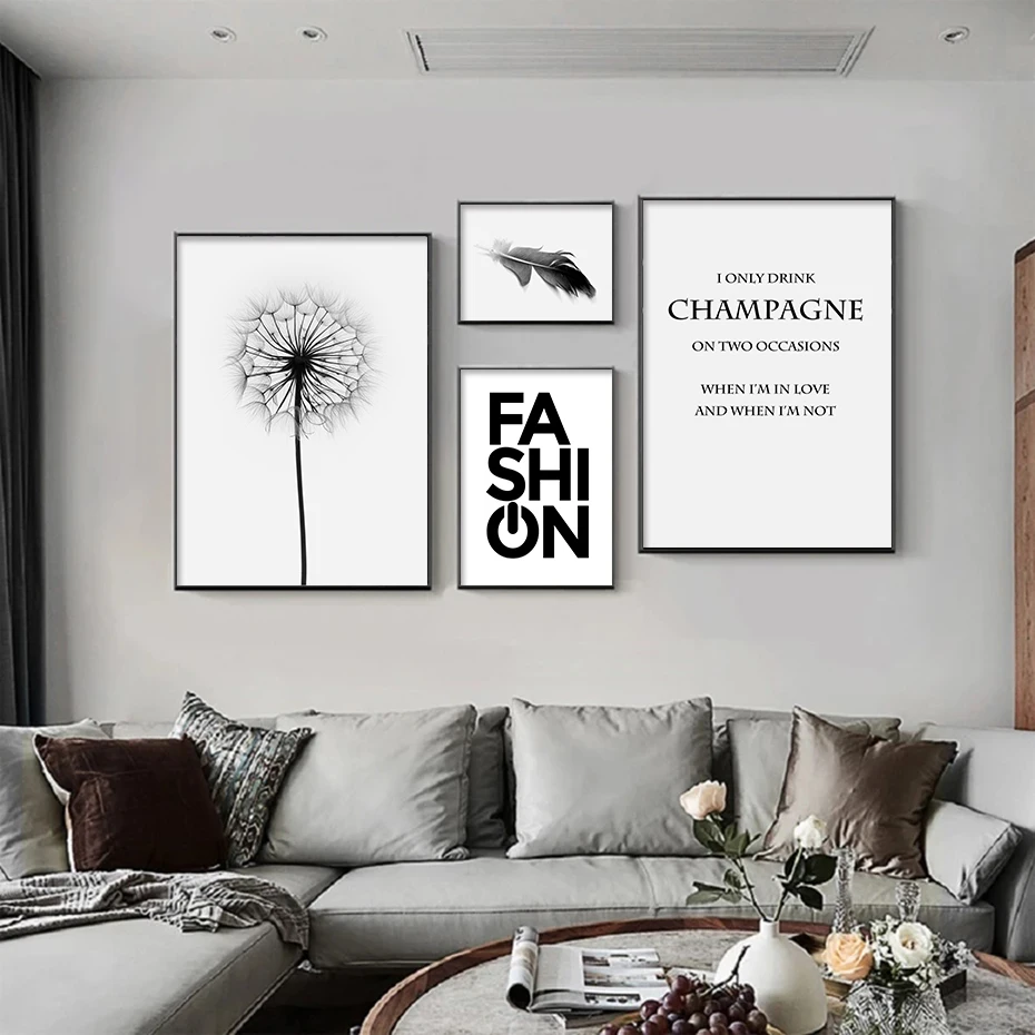 Vogue плакат черный, белый цвет печать на холсте или одуванчика или перьев или эмблемы для живописи современной гостиной модный алмазов картина Девушка Спальня Декор стены наклейки