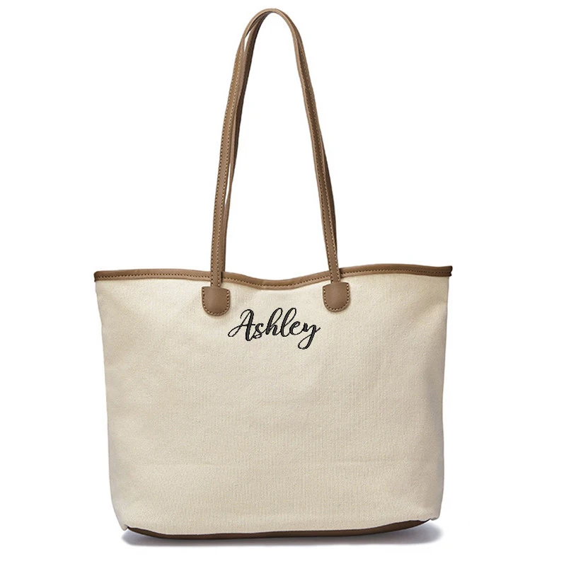 Холщовая Сумка-тоут на одно плечо с вышитым именем, простые универсальные