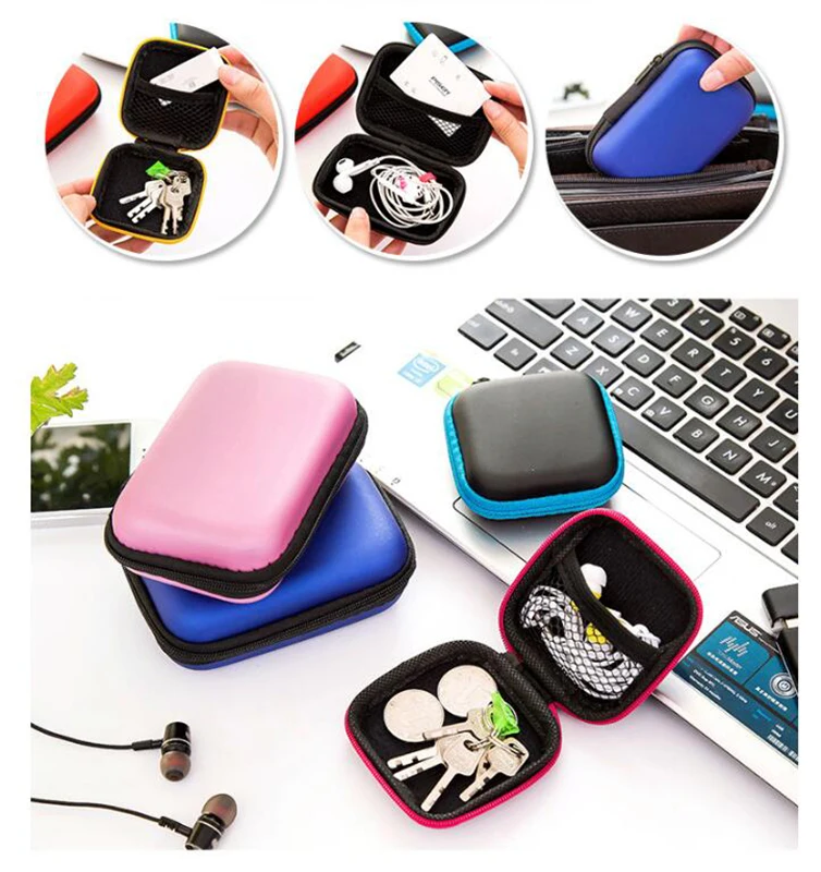 Жесткий мини-чехол на молнии для наушников, портативный футляр для наушников, сумка для хранения наушников, защитный органайзер для USB-кабеля