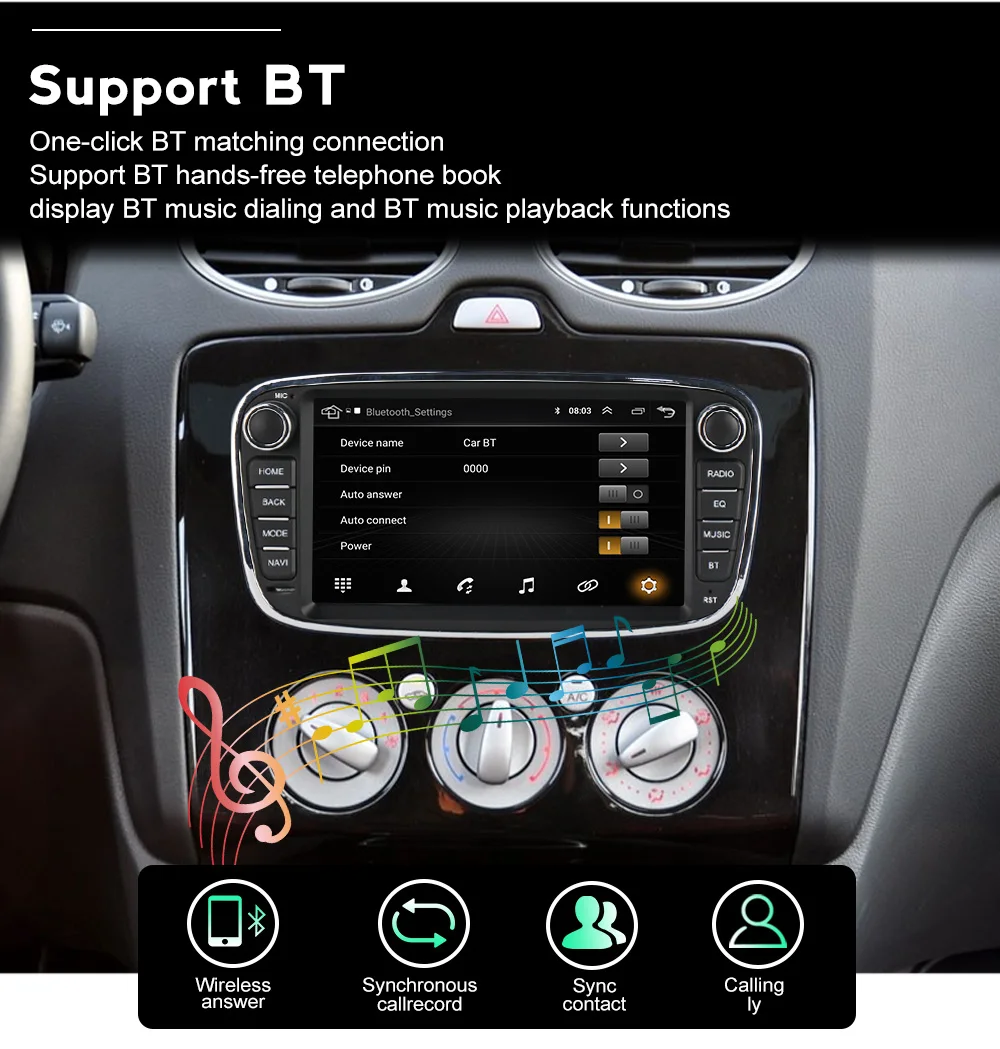 >Поддержка подключения bluetooth для воспроизведения музыки или телефонного звонка к автомобильному радио плееру