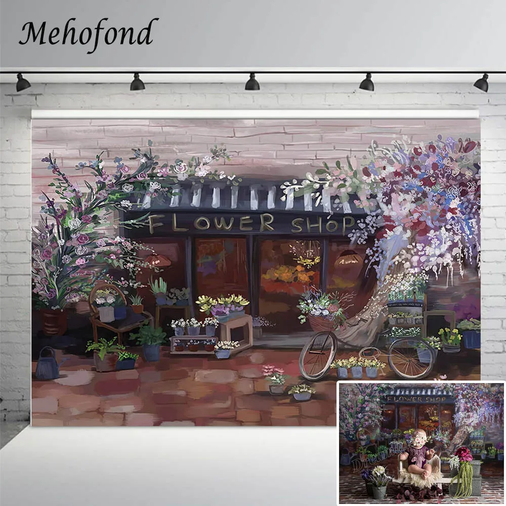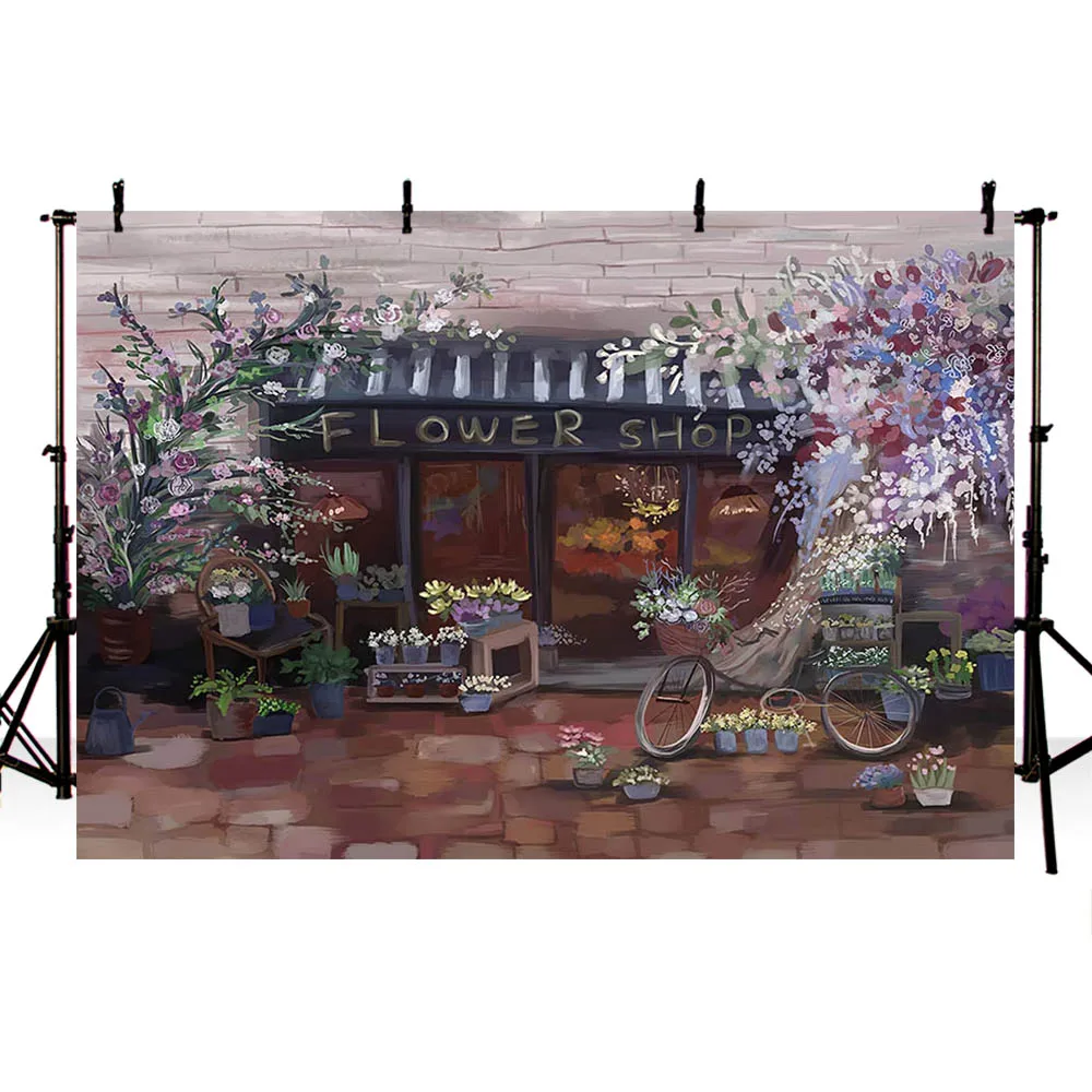 Цветочный магазин задний план для фотографии улица из масляной живописи магазине фон с изображением кирпичного пола портрет девушки, день рождения фон декорации фотостудии