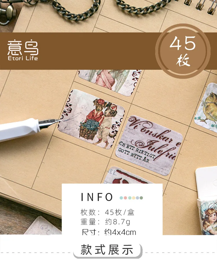 45 шт. ретро-бокс наклейки персонаж животных Птица Мини канцелярски...
