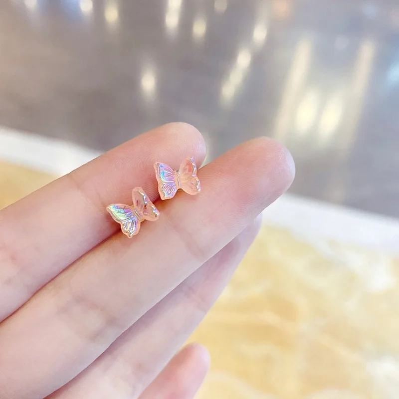 1 шт. INS мини бабочки серьги-гвоздики, серьги со шпилькой, для женщин, для девочек акрил цвет радуги титановая сталь Винт слуховая косточка пирсинг Mid серьги