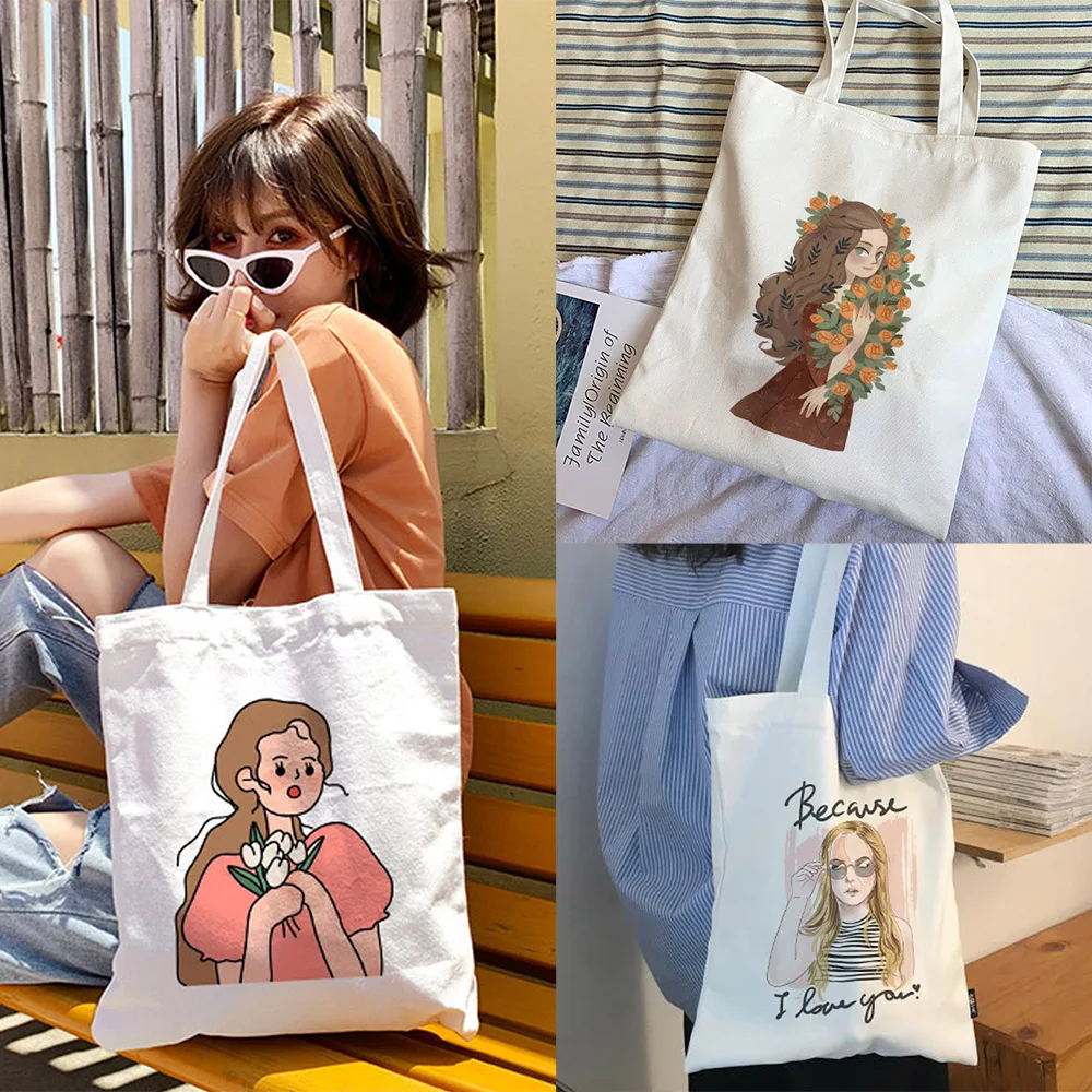 Холщовая женская сумка для покупок с принтом для девушек, Женская Х...