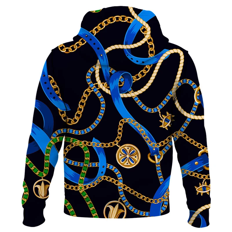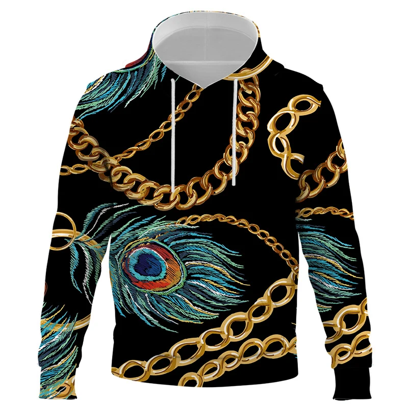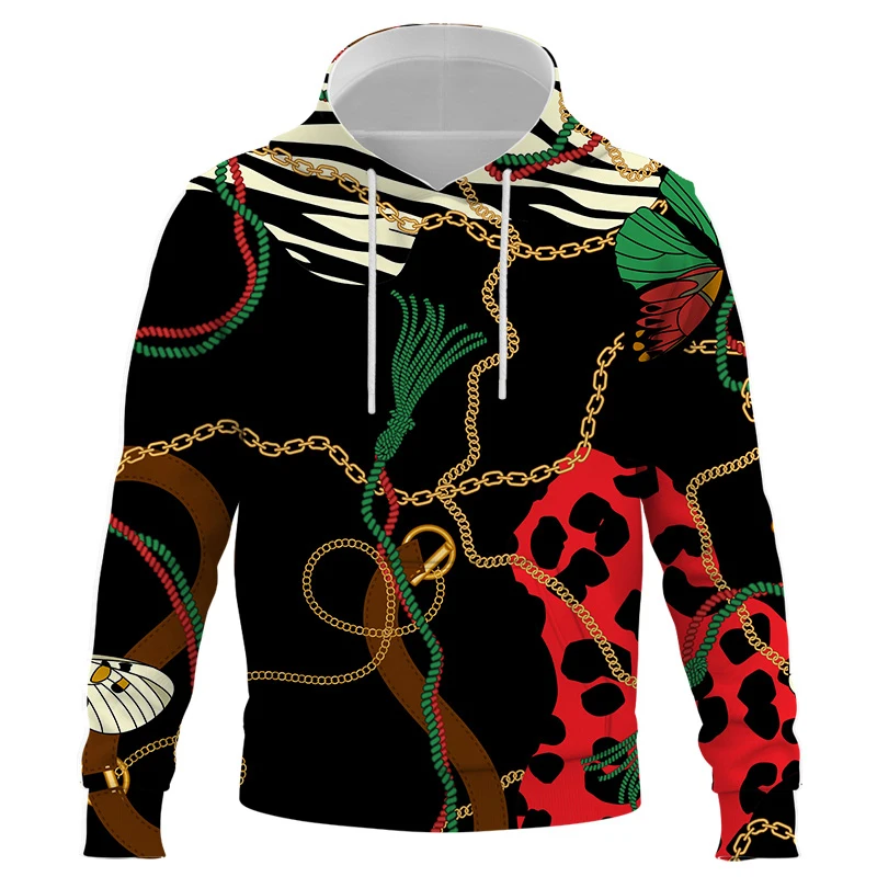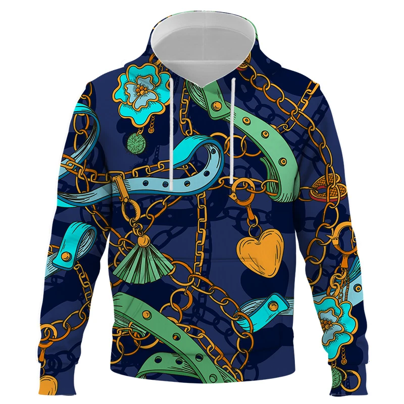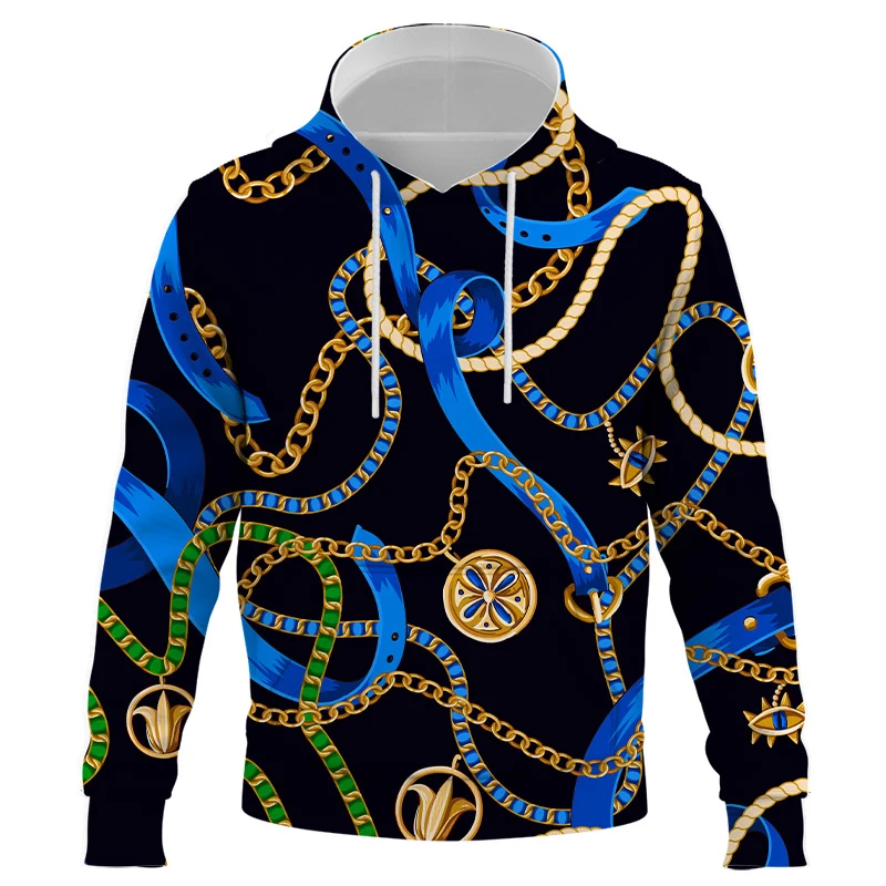 Мужская толстовка с капюшоном, в стиле Харадзюку, с 3D принтом железной цепи, осенняя толстовка унисекс, мужская одежда