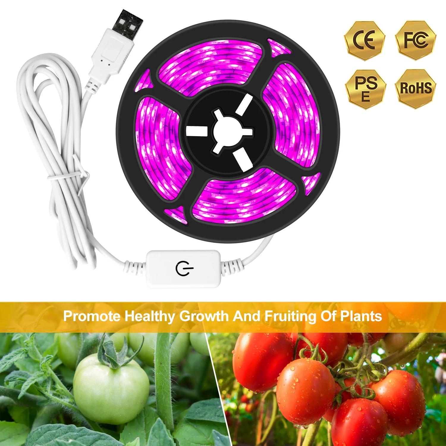 Светодиодный Grow светильник полный спектр Fitolampy USB Фито лампы Газа Плавная тусклая 2835 SMD DC5V завод лента Водонепроницаемый 0,5 HDMI кабель 1 м 2 м 3 м