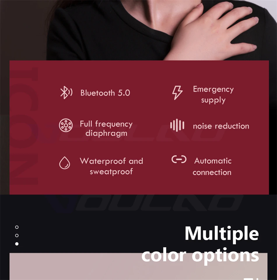 Особенности1, Bluetooth-совместимый V5.0, поддерживает большинство bluetooth-совместимых устройств и низкое энергопотребление2, чехол для зарядки 400 мА · ч может полностью заряжать 2 наушника около 6 раз, предлагаем более 24 часов3, с водонепроницаемой технологией, больше не нужно беспокоиться о воде и поте4, 10MMS двойной привод, наслаждайтесь 9D сильным глубоким басовым звуком музыки5, популярная функция сенсорного управления, поддержка коммутационных песен, телефонных звонков и голосовых вызовов.Списки аксессуаров:2 * беспроводные наушники1 * чехол для зарядки1 * USB кабель1 * Руководство пользователя