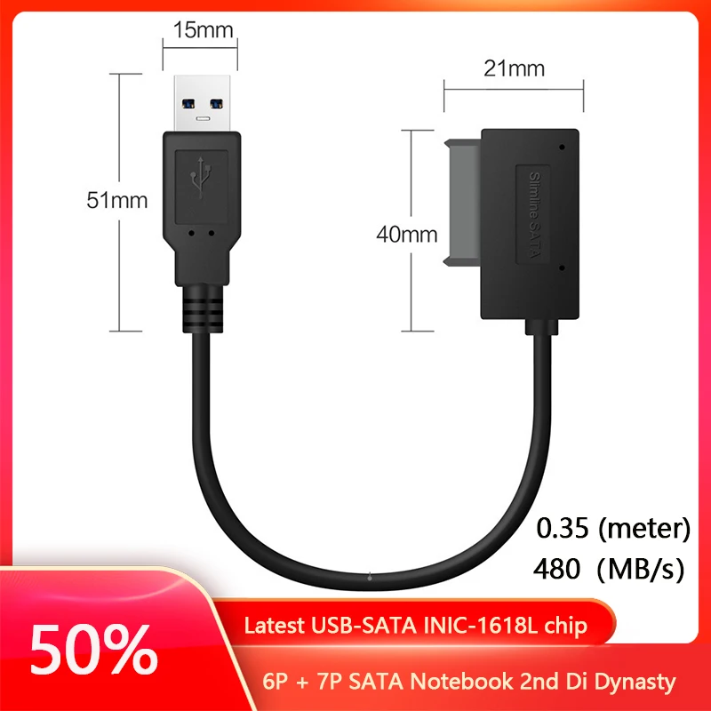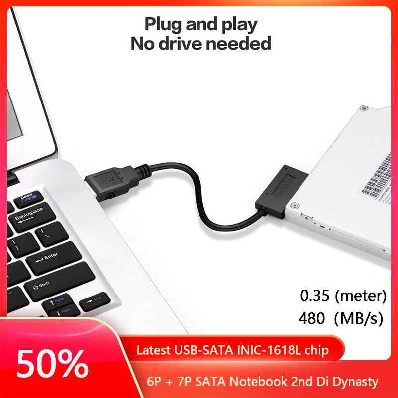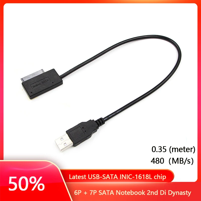 Прочный кабель SATA USB 2,0 до 6 + 7P, адаптер, конвертер, Внешний оптический привод для ноутбука, CD, DVD, ПК, ноутбука, линия передачи, новинка