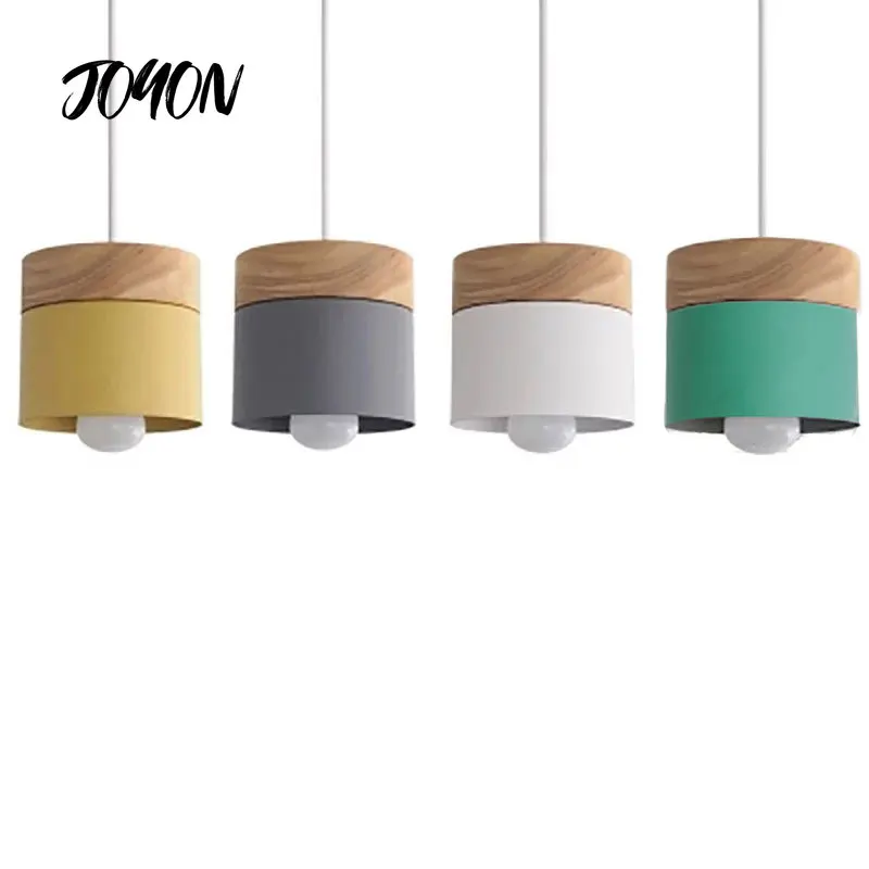 Подвесной светильник E27 в скандинавском стиле, светодиодный ный светильник в стиле макарон, железная и деревянная декоративная лампа для дома