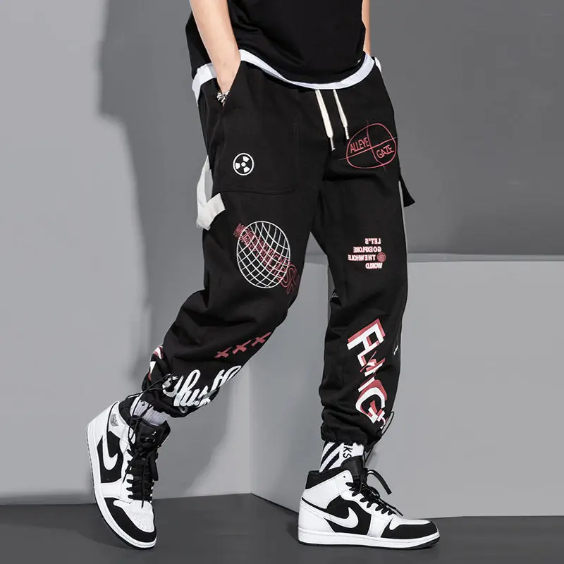 Брюки мужские для инструментов, модные повседневные свободные спортивные штаны, в стиле хип-хоп, штаны до щиколотки с большими карманами и кулиской, осень
