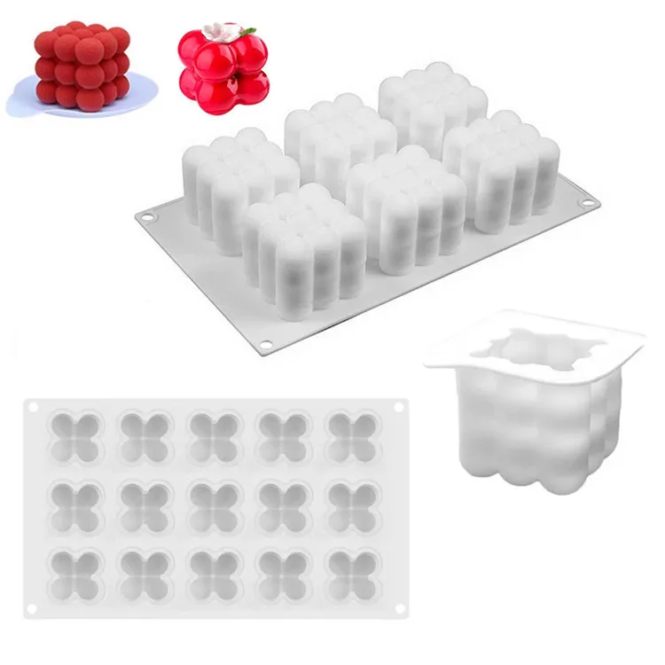 Силиконовая форма для свечи, 15 моделей, 3D форма для торта, помадки, куб, сделай сам, квадратная форма для пузырьков, кухонный инструмент для выпечки, торта