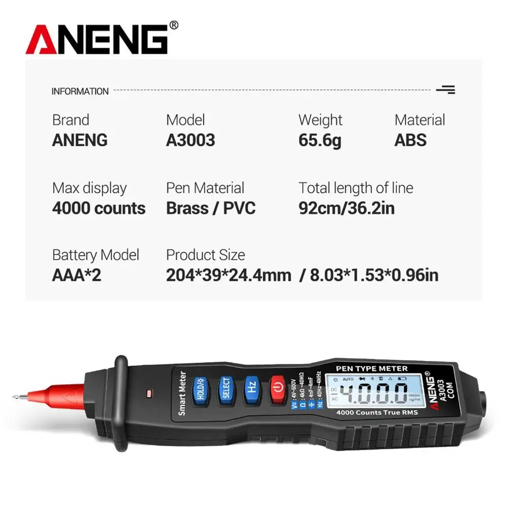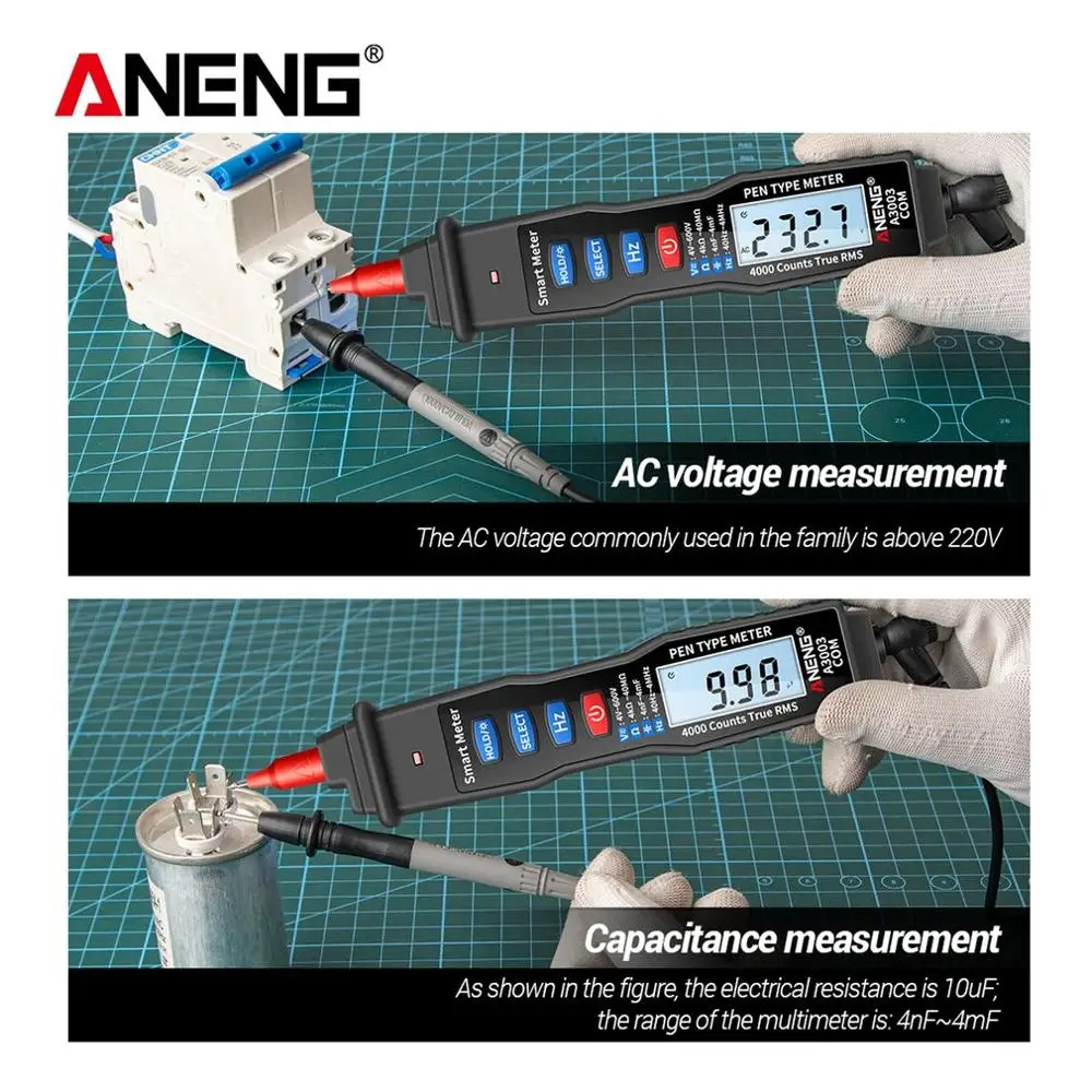 Цифровой мультиметр A3003 в виде ручки, 4000 отсчетов, бесконтактный Тестер переменногопостоянного напряжения, сопротивления, емкости, Гц