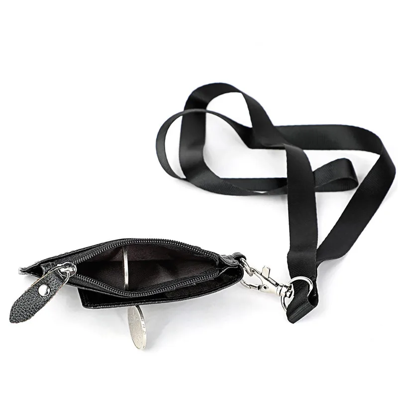 Чехол-кошелек с ремешком на шею и именной биркой, из натуральной кожи