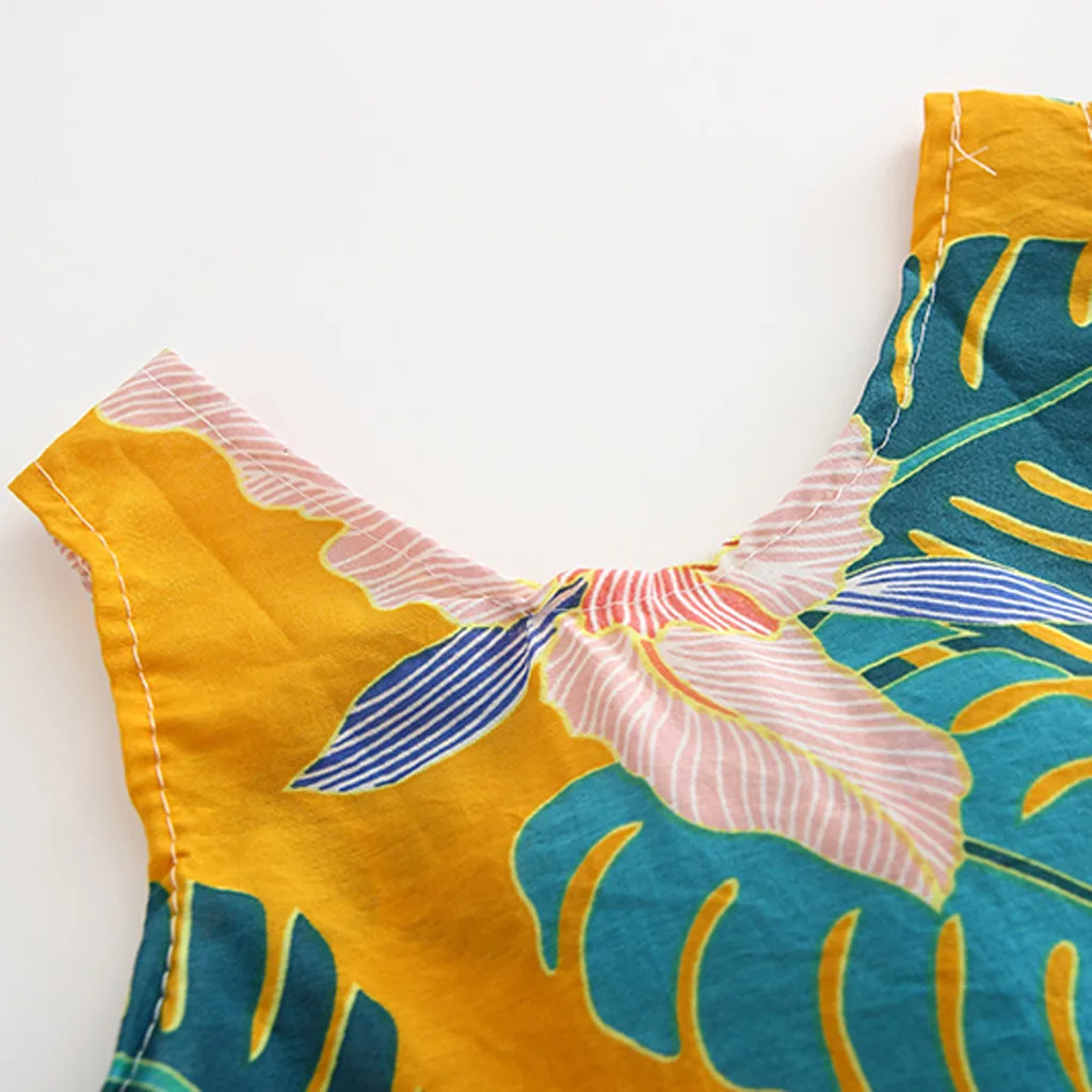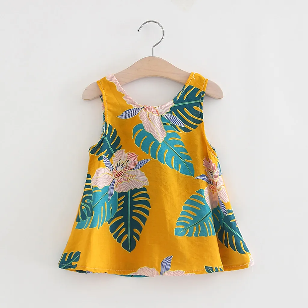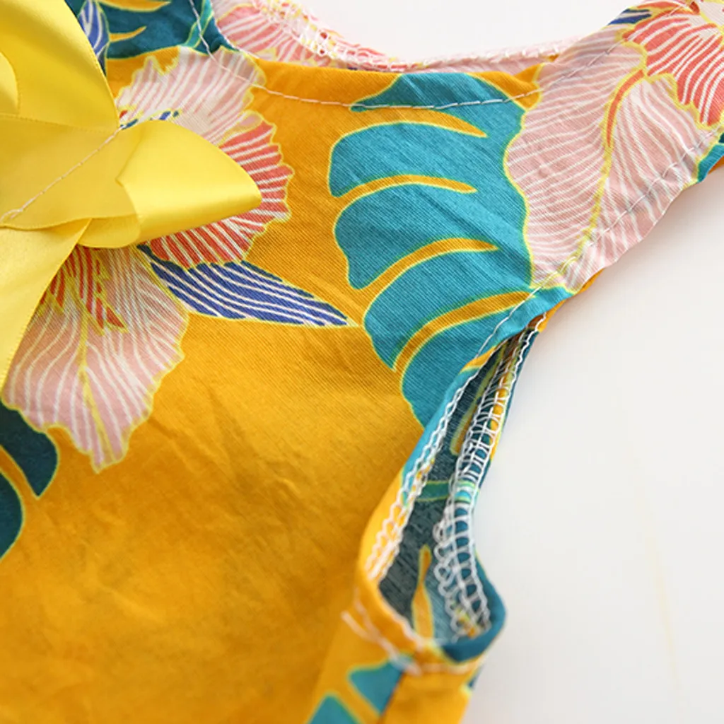 Платья без рукавов с цветочным принтом и бантом для маленьких девочек повседневная одежда