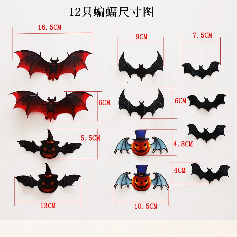 12 шт.компл. 3D красно-черная стерео Наклейка на стену летучая мышь...