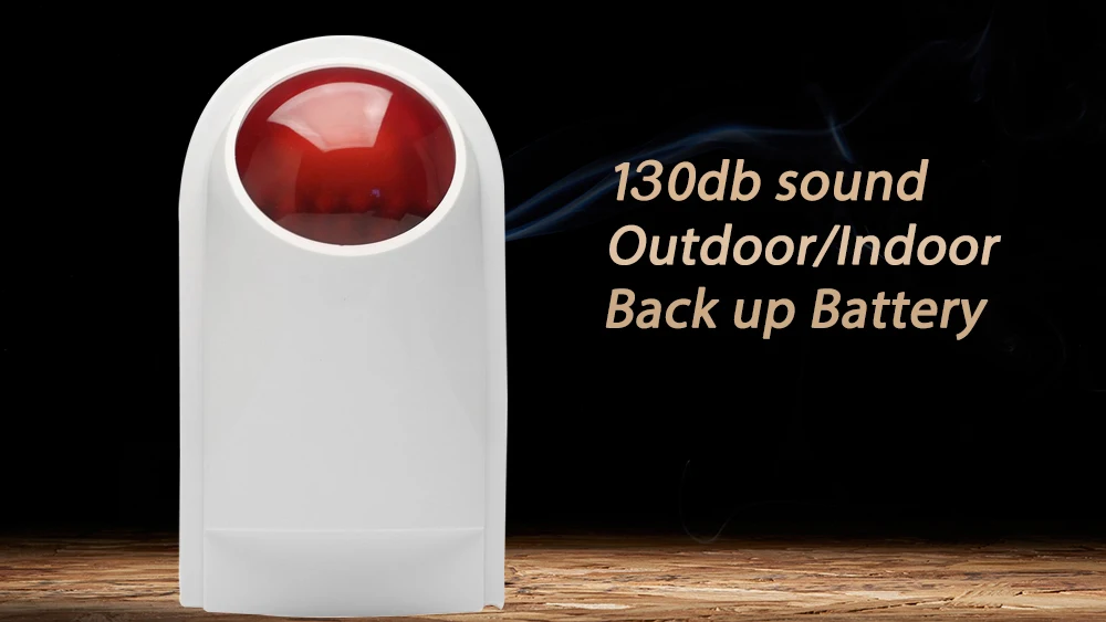 Установка: в основном Устанавливается под крытым/наружным карнизом, чтобы предупредить соседей и угрожать злоумышленникам при возникновении сигнала тревоги;"