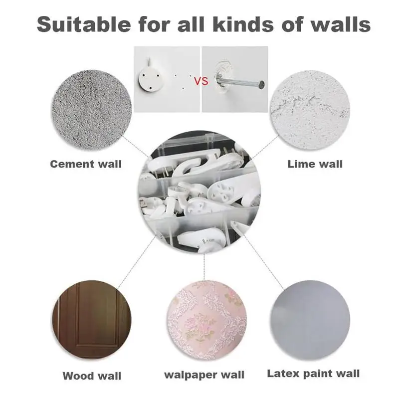 Подробности:Лучшее Висячие решение для художественной живописи кулон и Свадебная фоторамка дисплей.Бесшовные крючки-гвозди очень подходят для подвешивания домашнего и офисного искусства, таких как часы, фоторамки, маленькие зеркала, одежда, ключи, зонты, сумки и так далее.Размеры:1,9*4 см1,6*3 см2,7*2,7 смПримечание:Допускается небольшое отклонение размеров, вызванное искусственными измерениями.Посылка включает в себя:10 х настенных гвоздей