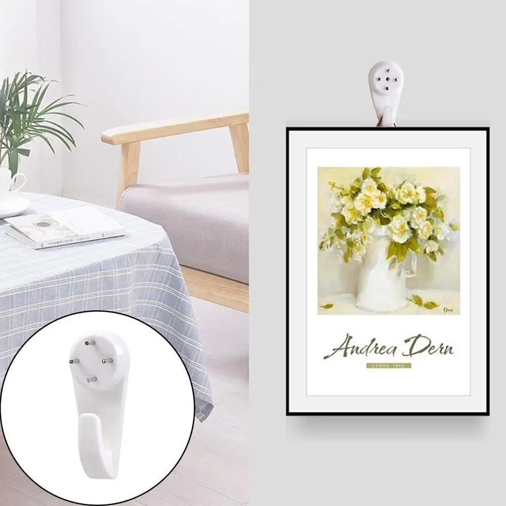 10 шт. белый картины работ фото Пластик невидимой вешалки вешалка крючок Вешалки декор дома зеркала стены Пластик висит в Корейском стиле V9O0