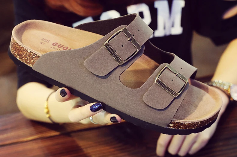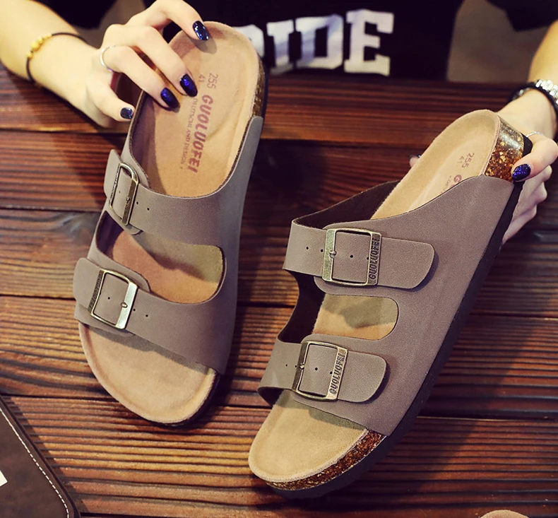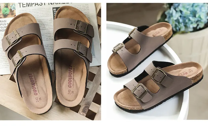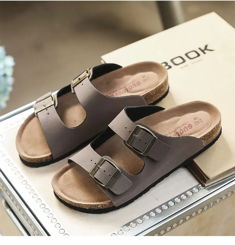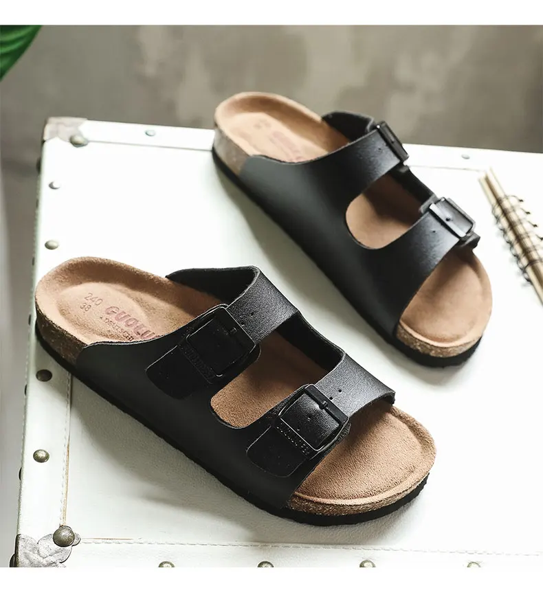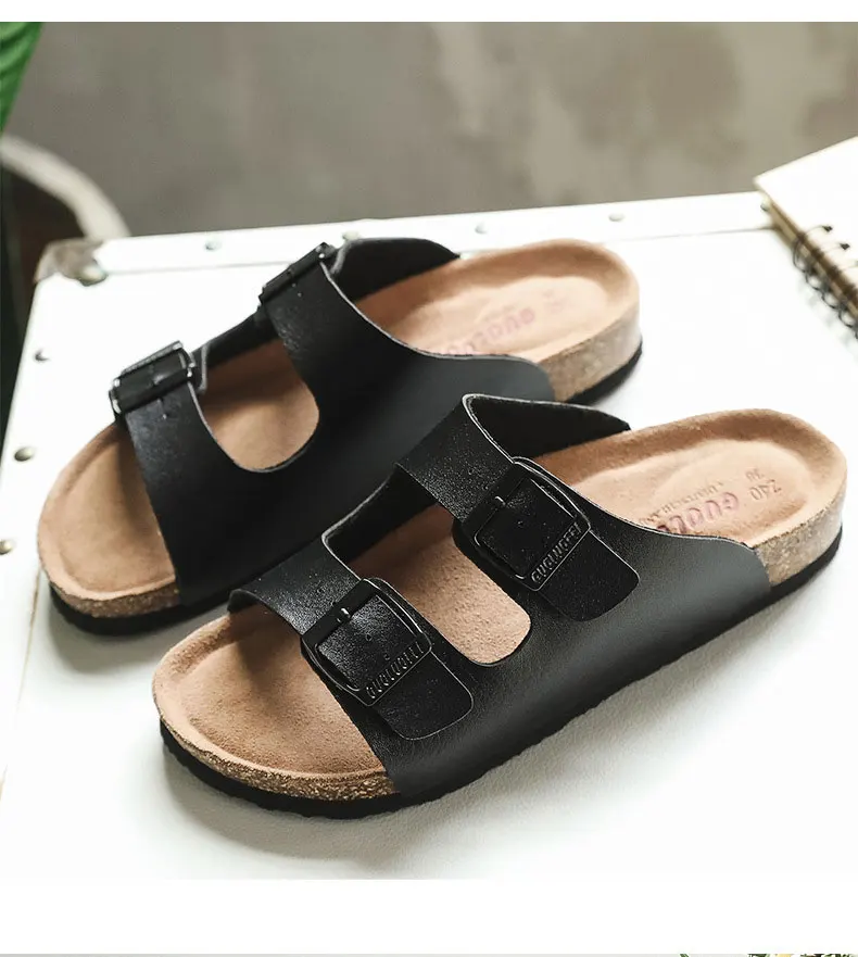 Новинка 2021, мужские туфли сабо из искусственной кожи, Высококачественные мягкие пробковые шлепанцы с двумя пряжками, обувь для мужчин и женщин, унисекс 35-46