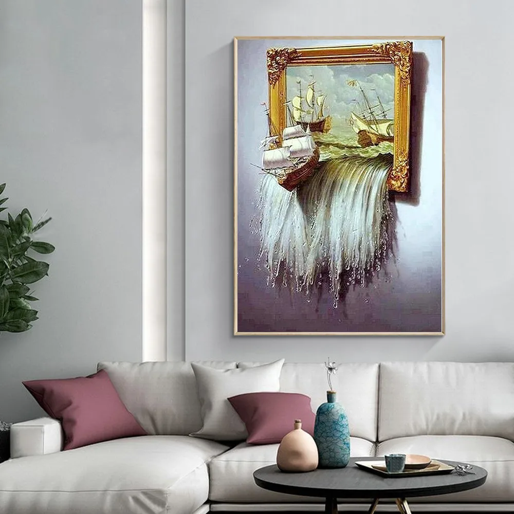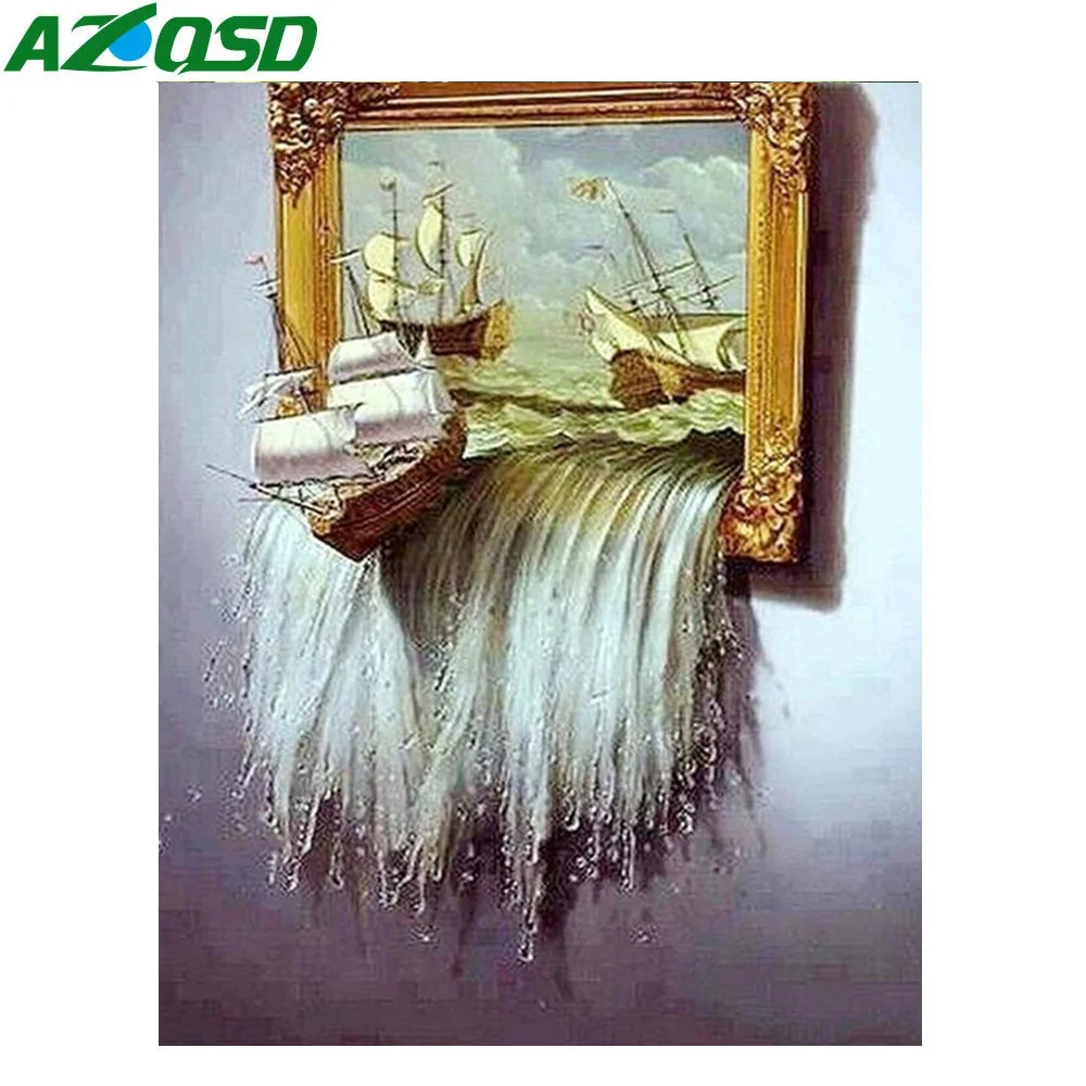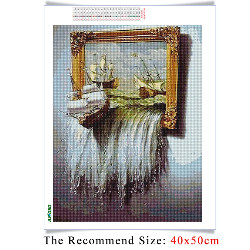 AZQSD Алмазная вышивка лодка водопад мозаика картина Стразы 5D DIY ...