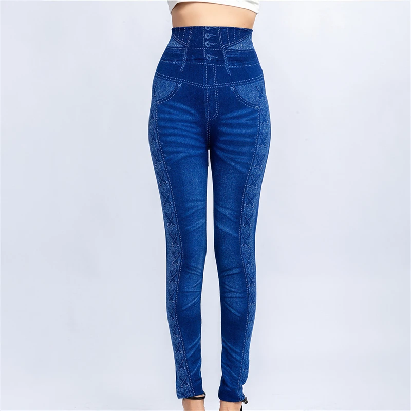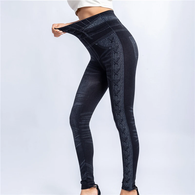 Женские лосины из джинсовой ткани с имитацией потертостей, повседневные обтягивающие эластичные брюки-карандаш с высокой талией, модные леггинсы для фитнеса и тренировок, 2020