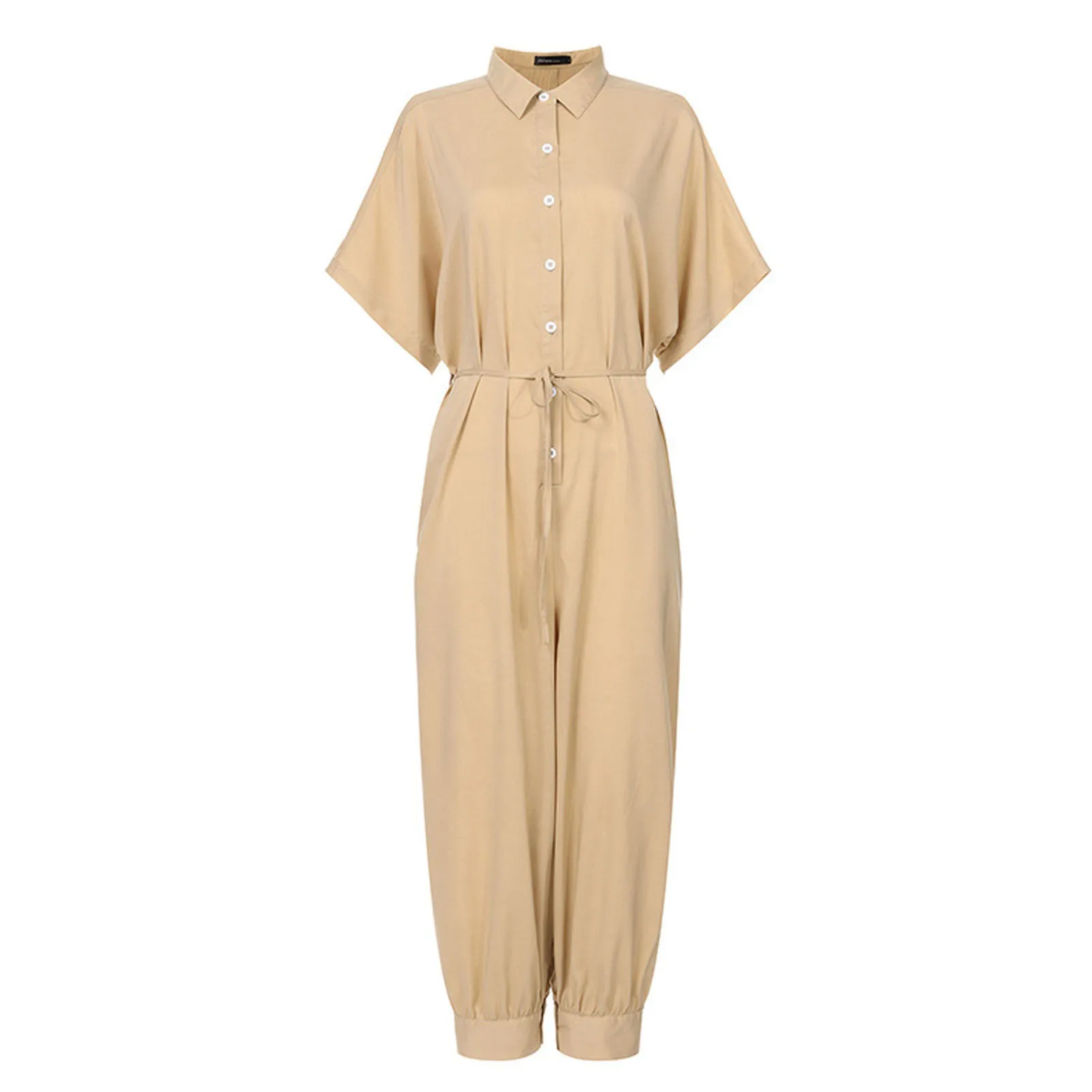Женский леопардовый комбинезон в стиле ретро, Длинные Комбинезоны с коротким рукавом, повседневные свободные летние комбинезоны на пуговицах