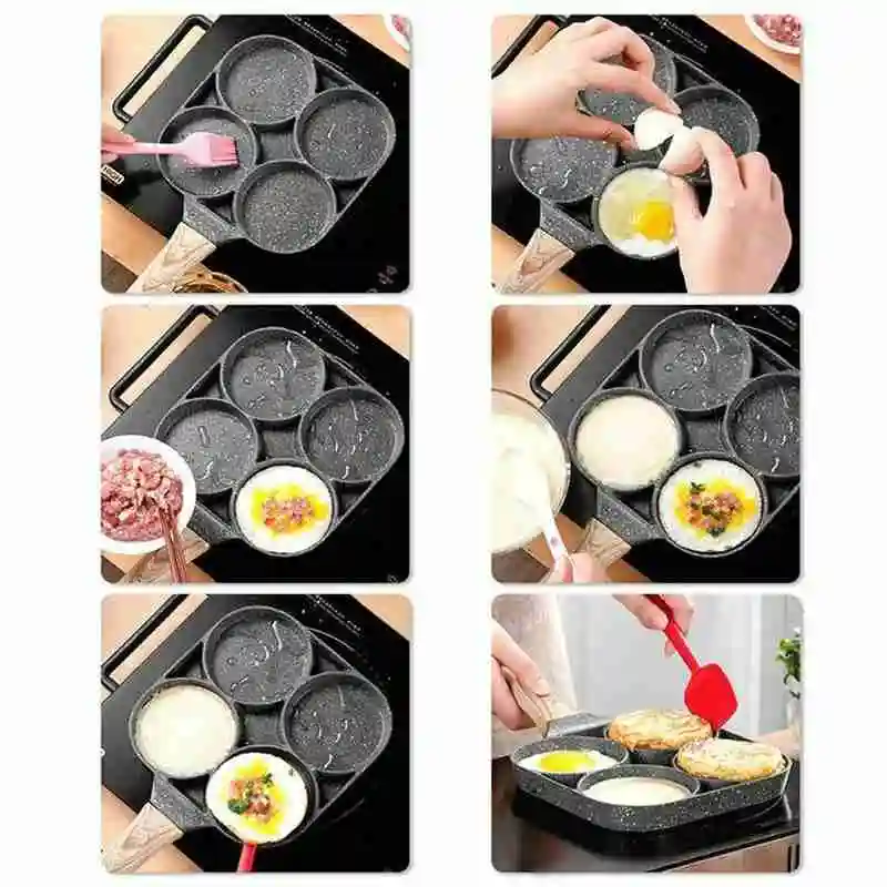 4 отверстия сковородка для омлета для дома Кухня ресторан для завтрака форма для омлета жареные горшок алюминия сковорода (Эко инструмент ручки кухонной посуды варить яйцо Z3B3