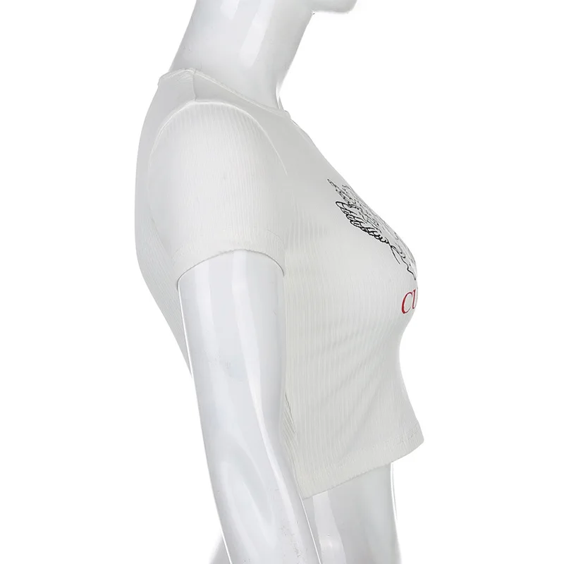 Женский короткий топ с буквенным принтом, винтажный хлопковый пуловер с коротким рукавом, облегающая летняя футболка, 2021