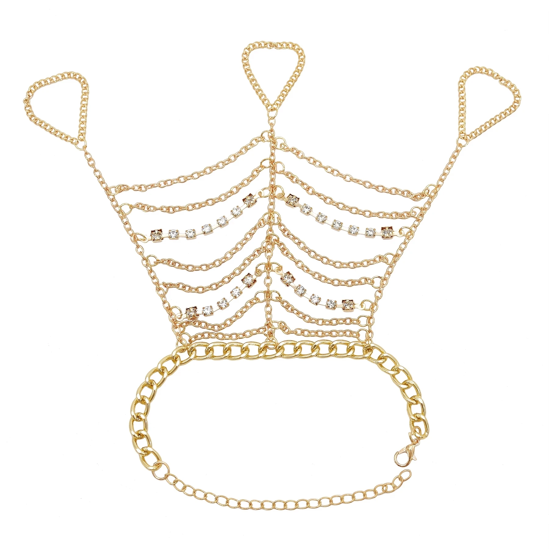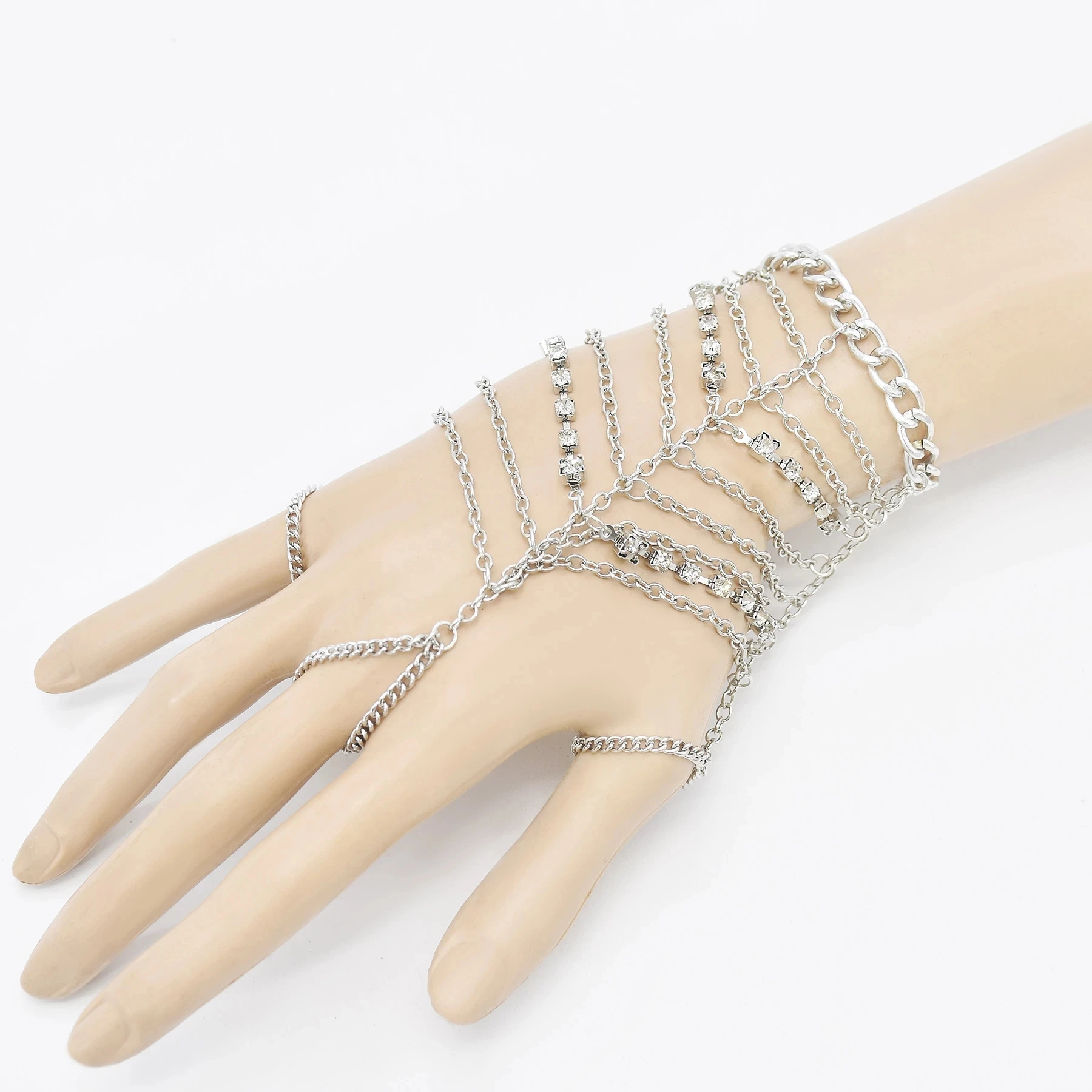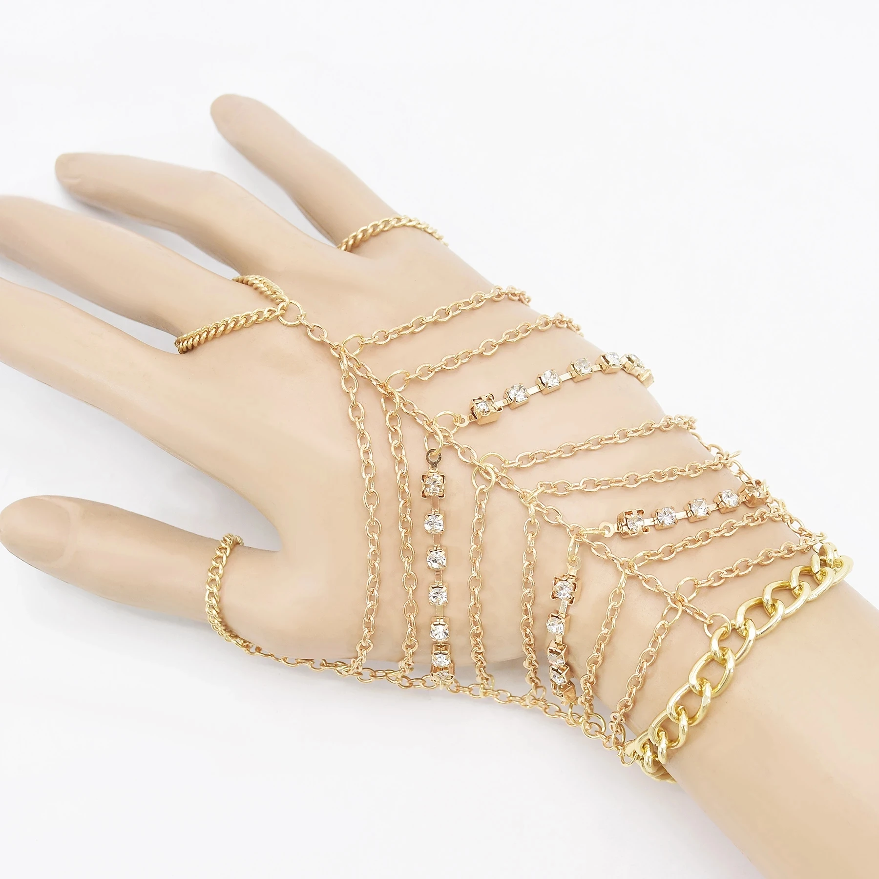Новые индийские женские браслеты в стиле бохо с металлической цепочкой, Кристальные стразы, браслеты-цепочки на палец, афганские Свадебные украшения для невесты