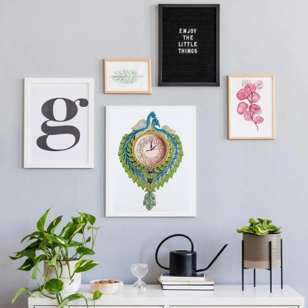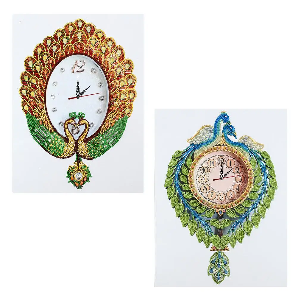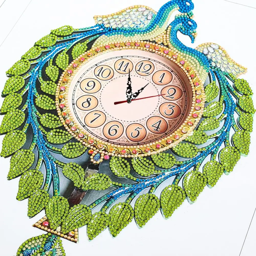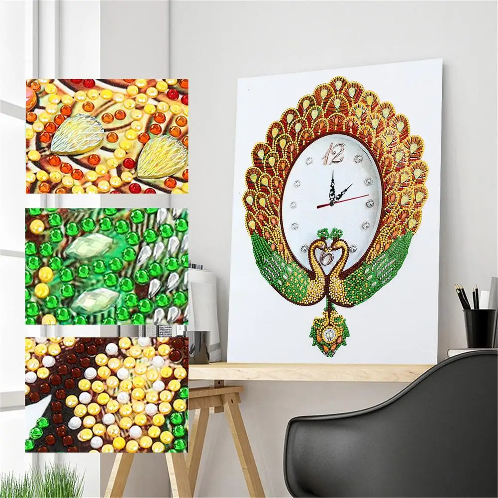 DIY 5D алмазов картина часовой набор красочные полная выкладка из страз особой формы, Алмазный пава LED настенные часы настенные светодиодные лампы для домашнего интерьера ручной работы для отделки стен